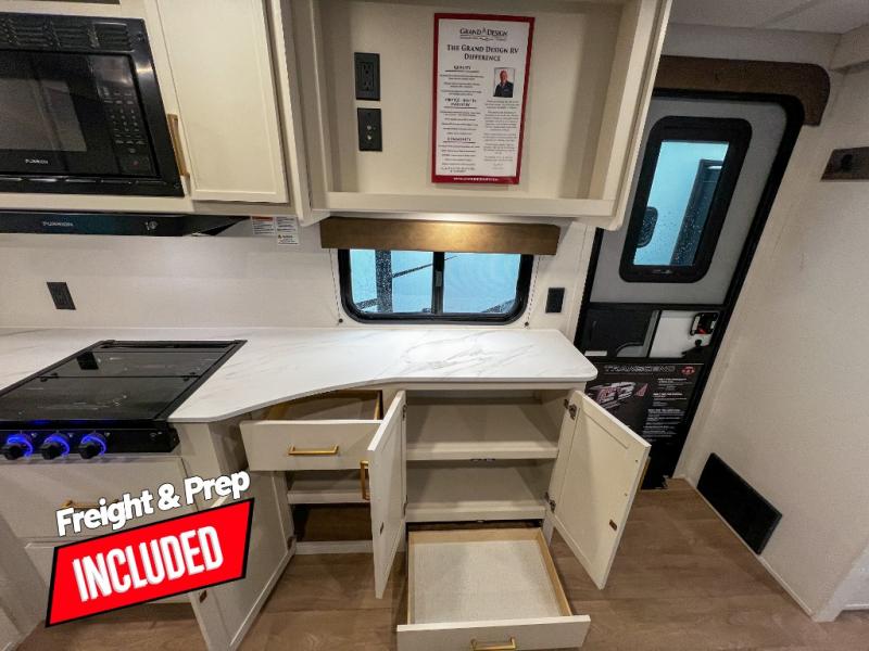 The customer-focused, quality-built Transcend Xplor travel trailers by Grand Design are your ticket to fun and adventure. You will appreciate the power tongue jack when it comes time to set up, as well as the all-in-one utility center and the detachable power cord with an LED light. These models include many outlets throughout, USB ports to charge your gadgets, and a JBL exterior speaker to listen to your favorite tunes. The interior of the Transcend Xplor will have you feeling right at home with upgraded residential furniture, residential countertops, residential cabinet doors, and the list goes on!