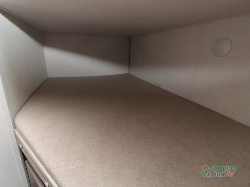 Families will appreciate the rear double-over-double bunks, offering generous space for kids, teens, or guests. Built with comfort and practicality in mind, these bunks can also serve as extra storage when you're hauling gear. The front walk-around queen bed provides a peaceful retreat with dual wardrobes and overhead cabinetry, giving you plenty of room to stay organized.