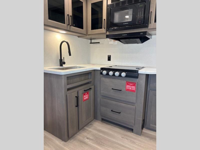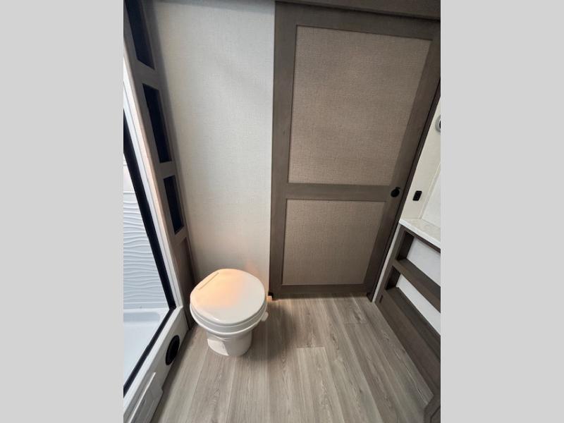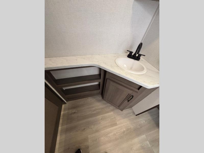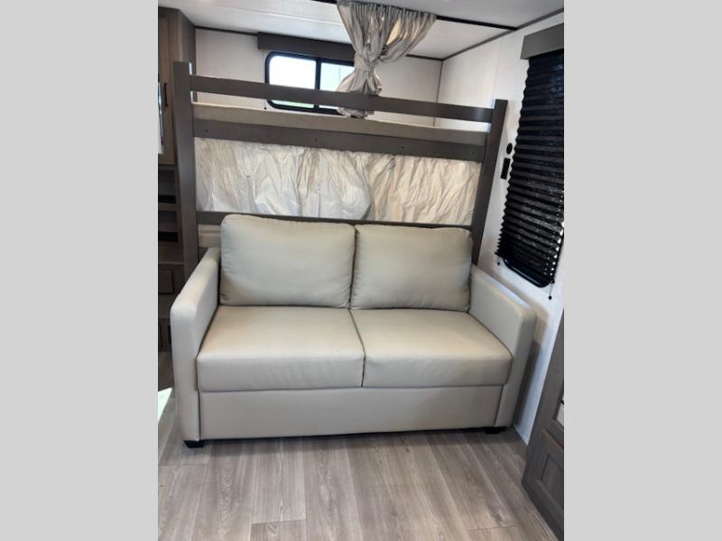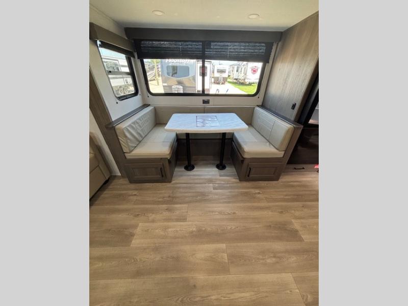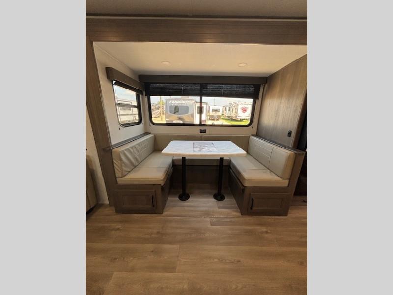 Inside, the 23BHX maximizes space with a smart, family-friendly floorplan. Theater dinette seating replaces the standard booth dinette for enhanced comfort during meals or game nights. The Elite Kitchen Package makes cooking a breeze, while the Power and Entertainment Package keeps everyone connected and entertained. Solar Prep and the 4-Season Protection Package ensure this trailer is ready for off-grid adventures and year-round travel, and additional packages like Construction and Convenience, Lifestyle, and SafeRide RV Roadside Assistance provide confidence and convenience for every trip.