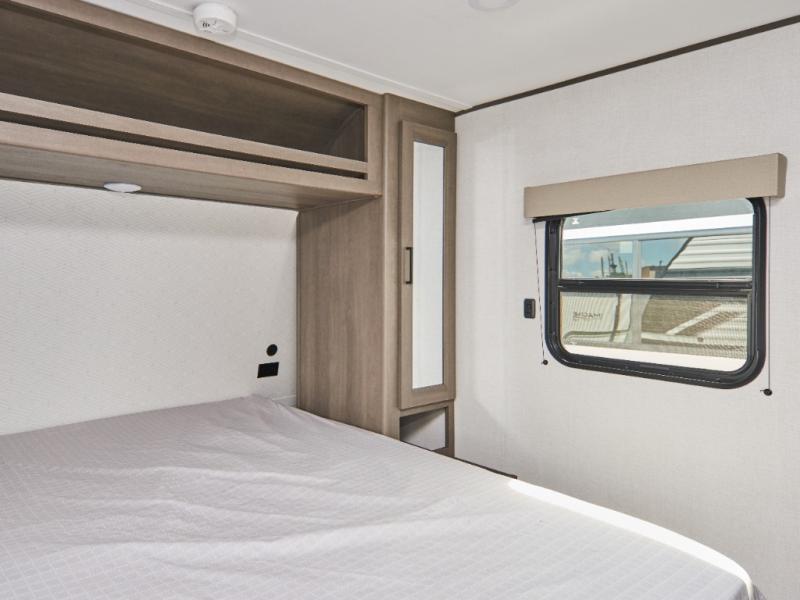 The Transcend Xplor 23BHX is the perfect travel trailer for families seeking comfort, functionality, and adventure. Kids will love the double-size bunk beds, complete with privacy curtains and under-bed storage for toys and gear. The full bathroom includes a linen closet, making it easy to keep towels and toiletries organized.