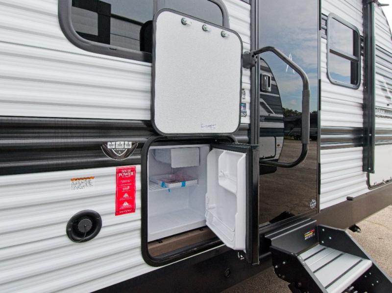 Enjoy the outdoors with the dual entry doors for added convenience, a power awning for shade, and pass-through storage for all your camping essentials.