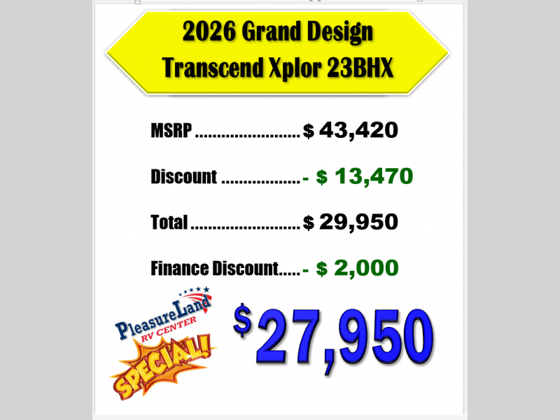 New 2026 Grand Design Transcend Xplor 23BHX Travel Trailer