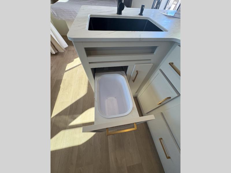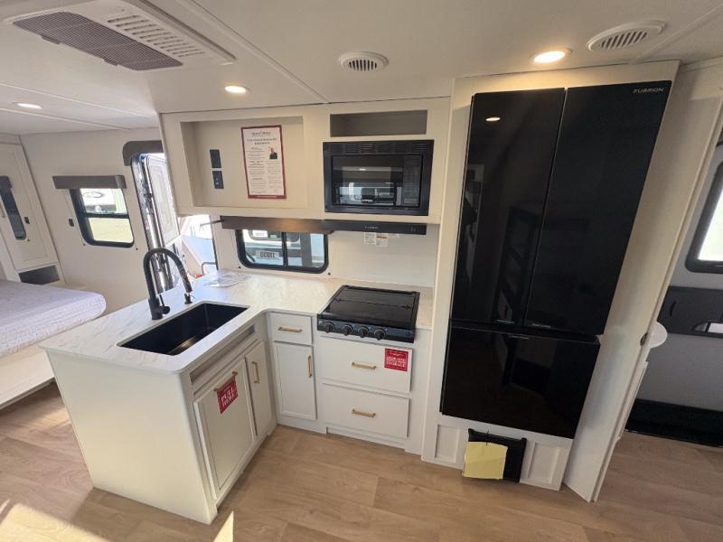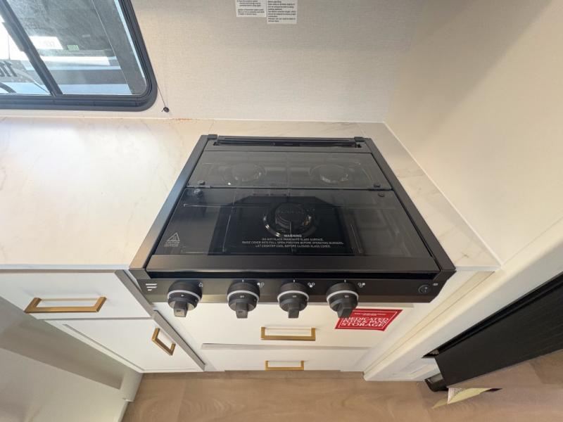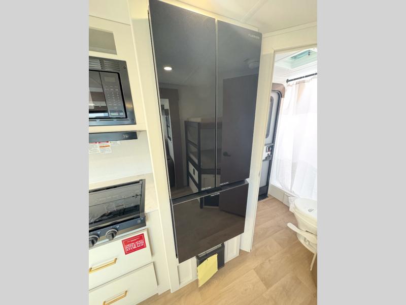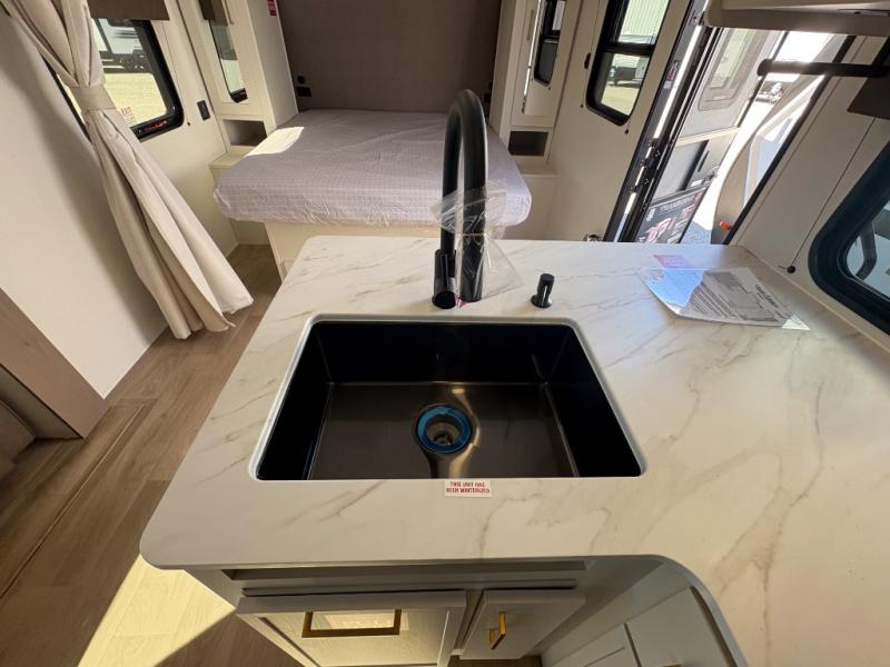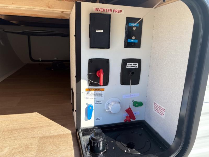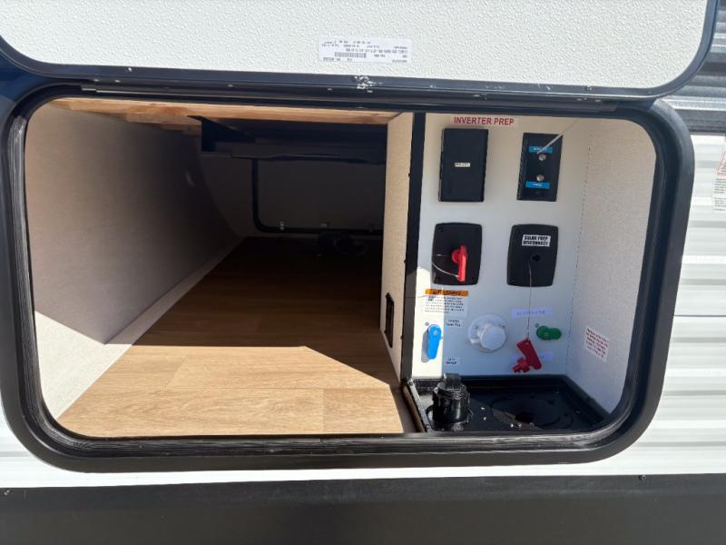 This fantastic travel trailer is designed to provide the ultimate in comfort, convenience, and adventure! The double-size bunk beds are perfect for kids, providing ample sleeping space and an under-bed storage space for all your belongings. The full bathroom features a linen closet, providing convenient storage for towels and toiletries. In the kitchen area, the U-shaped dinette is a great spot for creating memories that will last a lifetime, the refrigerator keeps your food and drinks fresh, while the microwave provides a quick and easy way to prepare meals. And for major convenience, the pull-out trash makes cleaning up a simple task. Take a nap in the comfortable front queen bed, which is a serene retreat, providing a comfortable spot to rest and relax. Jump to the exterior in a comfortable way with the double entry/exit door providing added convenience and flexibility, while the exterior awning provides shade and protection from the elements. The pass-through storage offers ample space for your outdoor gear and equipment.
