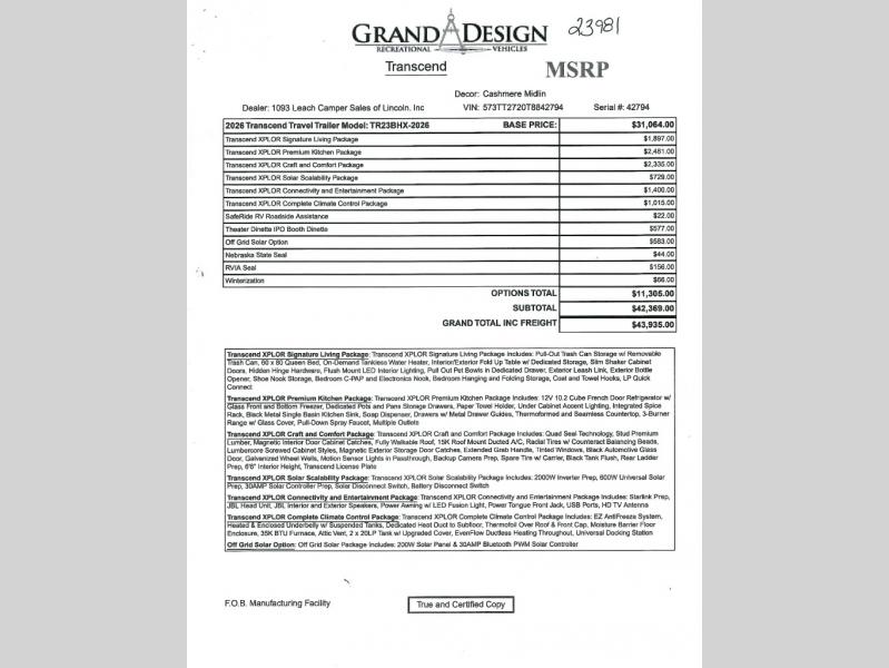 New 2026 Grand Design Transcend Xplor 23BHX Travel Trailer