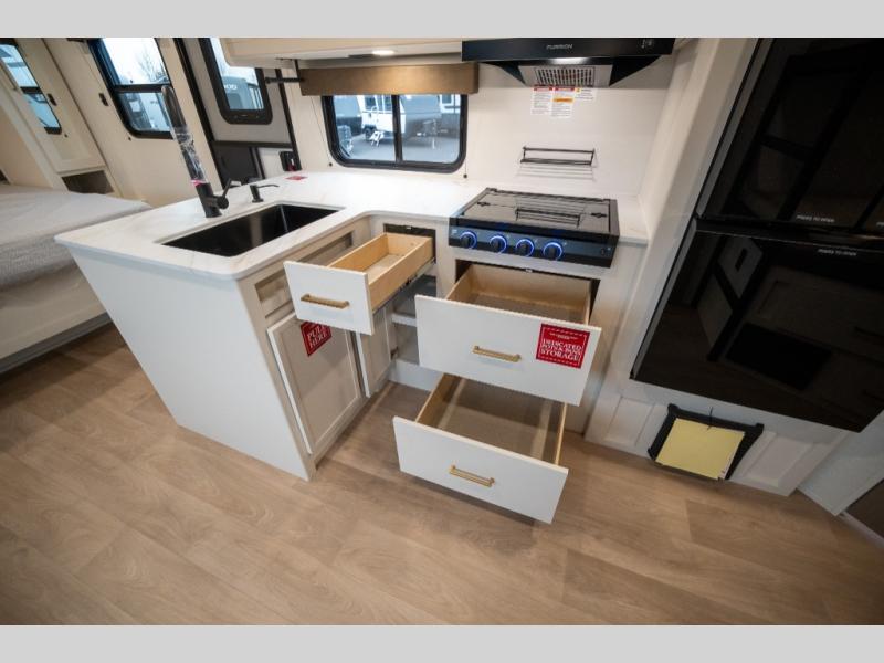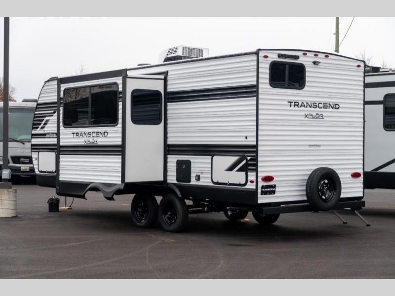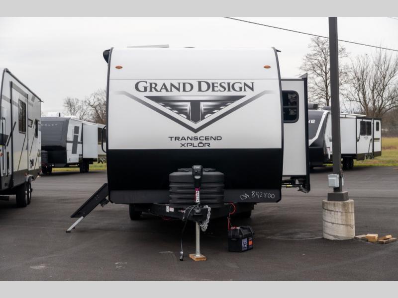 The customer-focused, quality-built Transcend Xplor travel trailers by Grand Design are your ticket to fun and adventure. You will appreciate the power tongue jack when it comes time to set up, as well as the all-in-one utility center and the detachable power cord with an LED light. These models include many outlets throughout, USB ports to charge your gadgets, and a JBL exterior speaker to listen to your favorite tunes. The interior of the Transcend Xplor will have you feeling right at home with upgraded residential furniture, residential countertops, residential cabinet doors, and the list goes on!