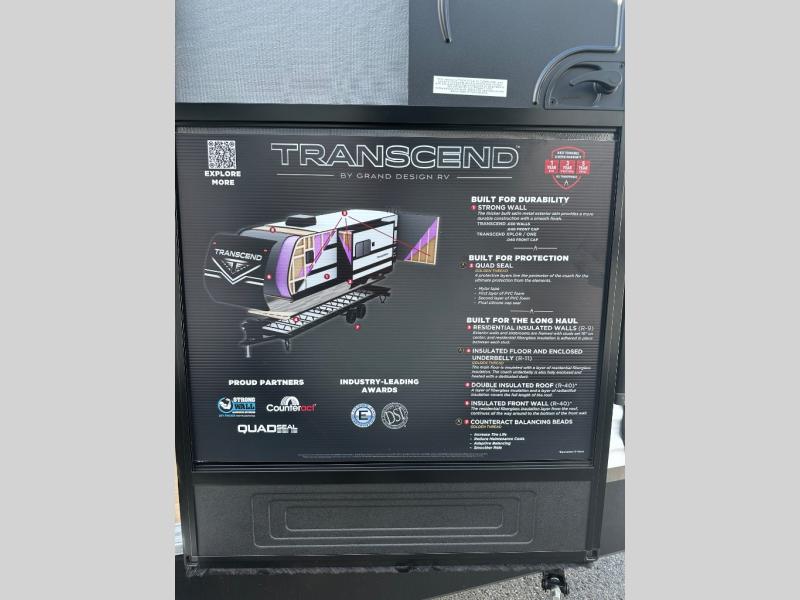 The customer-focused, quality-built Transcend Xplor travel trailers by Grand Design are your ticket to fun and adventure. You will appreciate the power tongue jack when it comes time to set up, as well as the all-in-one utility center and the detachable power cord with an LED light. These models include many outlets throughout, USB ports to charge your gadgets, and a JBL exterior speaker to listen to your favorite tunes. The interior of the Transcend Xplor will have you feeling right at home with upgraded residential furniture, residential countertops, residential cabinet doors, and the list goes on!