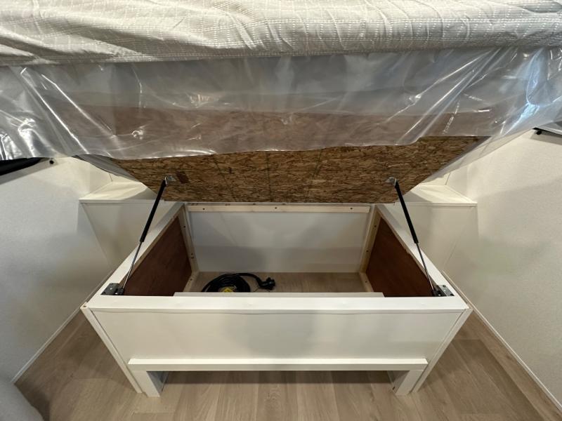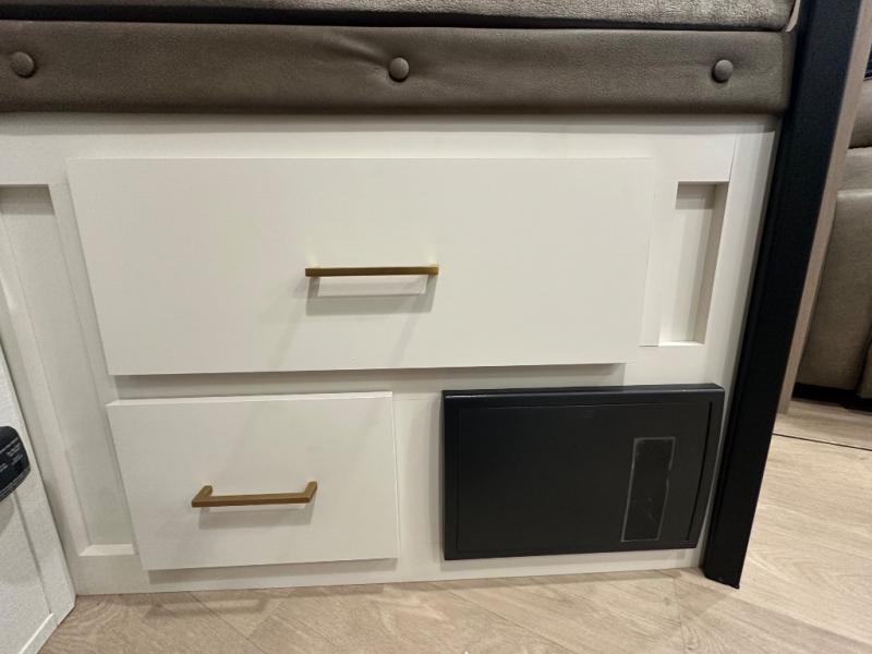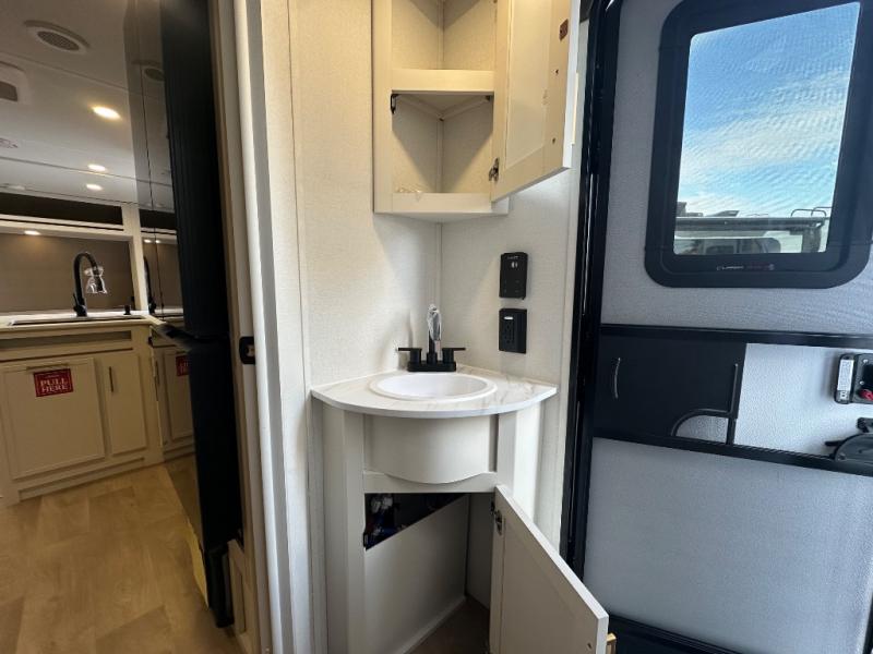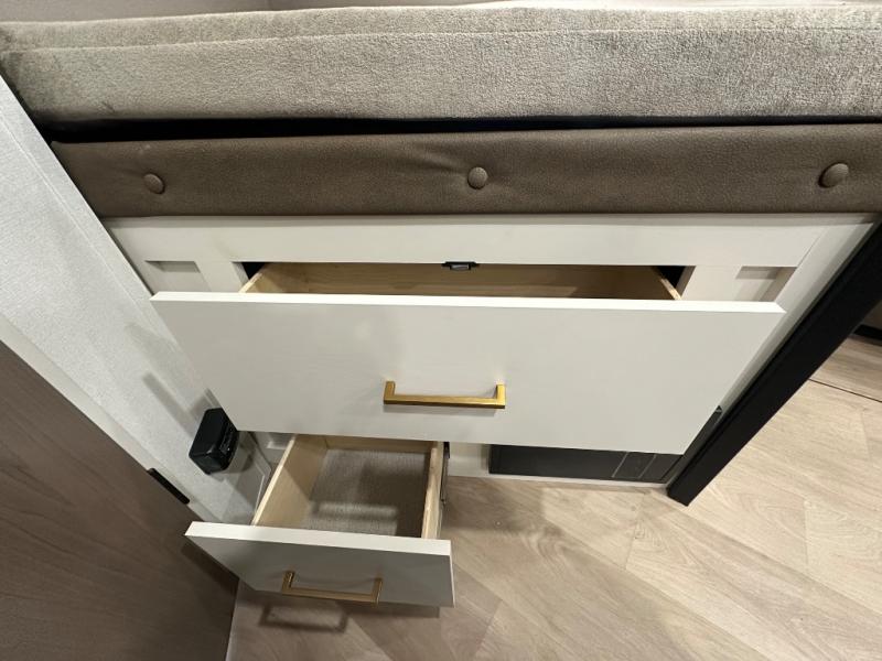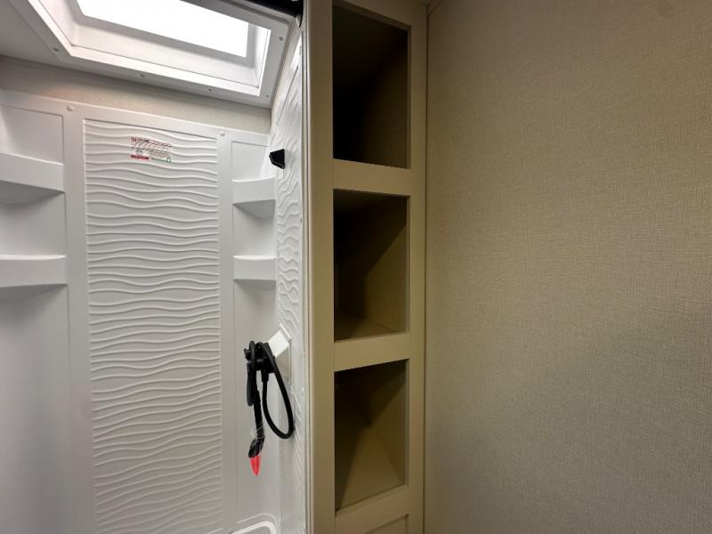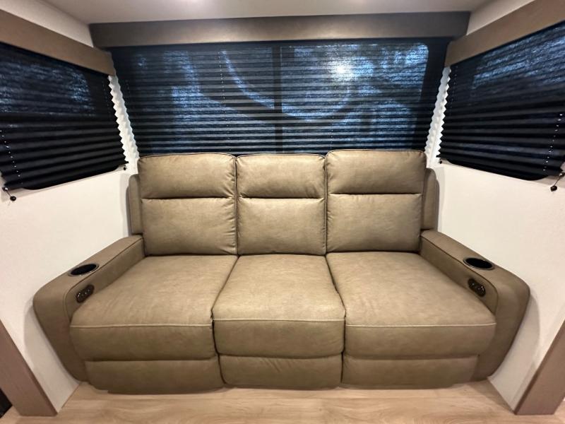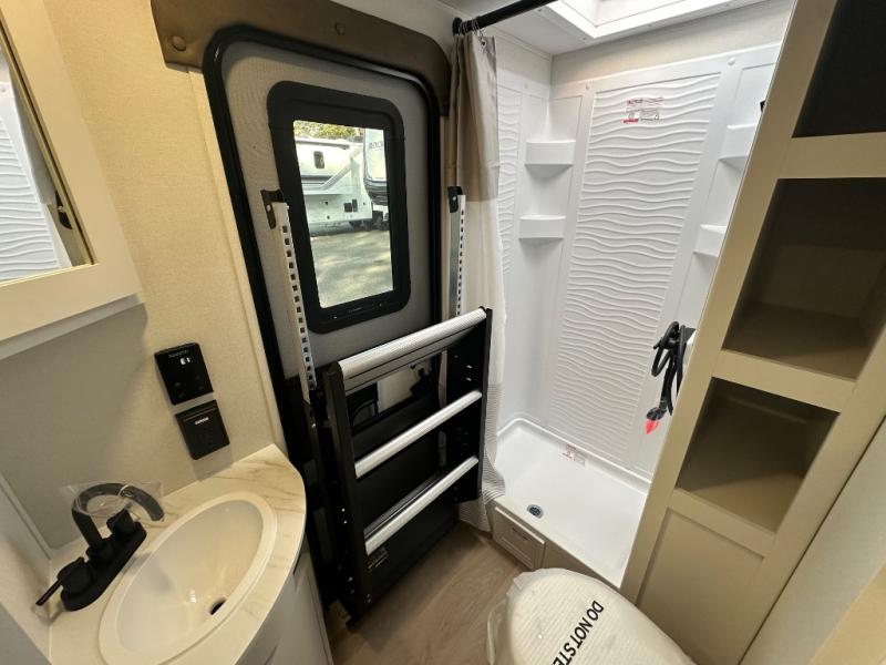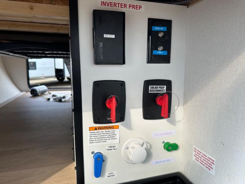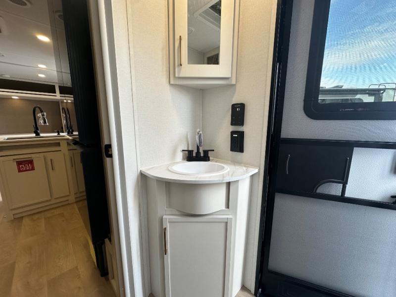 This fantastic travel trailer is designed to provide the ultimate in comfort, convenience, and adventure! The double-size bunk beds are perfect for kids, providing ample sleeping space and an under-bed storage space for all your belongings. The full bathroom features a linen closet, providing convenient storage for towels and toiletries. In the kitchen area, the U-shaped dinette is a great spot for creating memories that will last a lifetime, the refrigerator keeps your food and drinks fresh, while the microwave provides a quick and easy way to prepare meals. And for major convenience, the pull-out trash makes cleaning up a simple task. Take a nap in the comfortable front queen bed, which is a serene retreat, providing a comfortable spot to rest and relax. Jump to the exterior in a comfortable way with the double entry/exit door providing added convenience and flexibility, while the exterior awning provides shade and protection from the elements. The pass-through storage offers ample space for your outdoor gear and equipment.