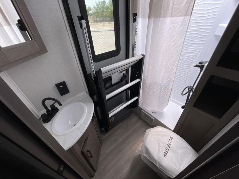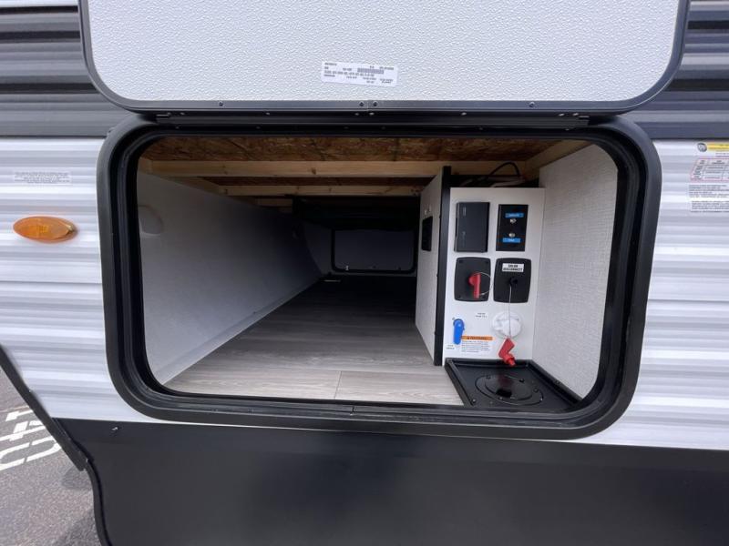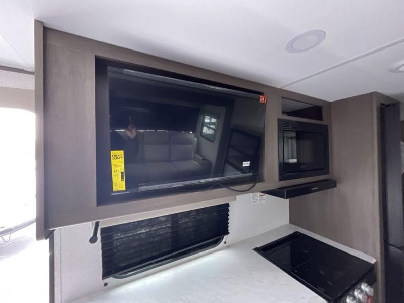 The 23BHX comfortably accommodates your family with double bunks, a front queen bed, and the U-shaped dinette that can convert into additional sleeping space. The floorplan maximizes living space while creating private areas for adults and kids alike.