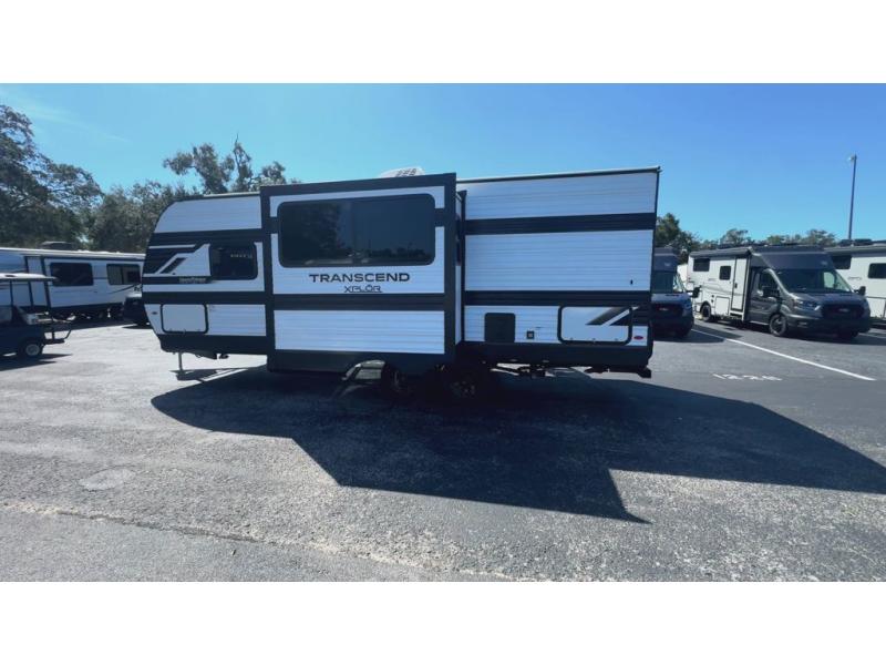 The customer-focused, quality-built Transcend Xplor travel trailers by Grand Design are your ticket to fun and adventure. You will appreciate the power tongue jack when it comes time to set up, as well as the all-in-one utility center and the detachable power cord with an LED light. These models include many outlets throughout, USB ports to charge your gadgets, and a JBL exterior speaker to listen to your favorite tunes. The interior of the Transcend Xplor will have you feeling right at home with upgraded residential furniture, residential countertops, residential cabinet doors, and the list goes on!