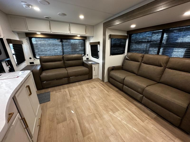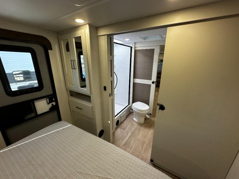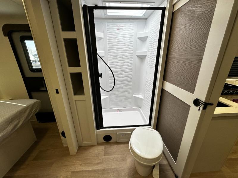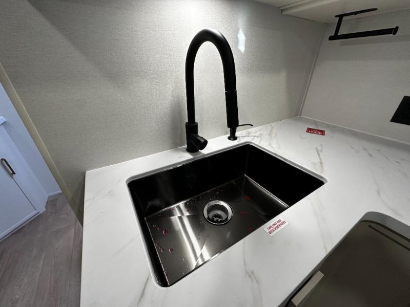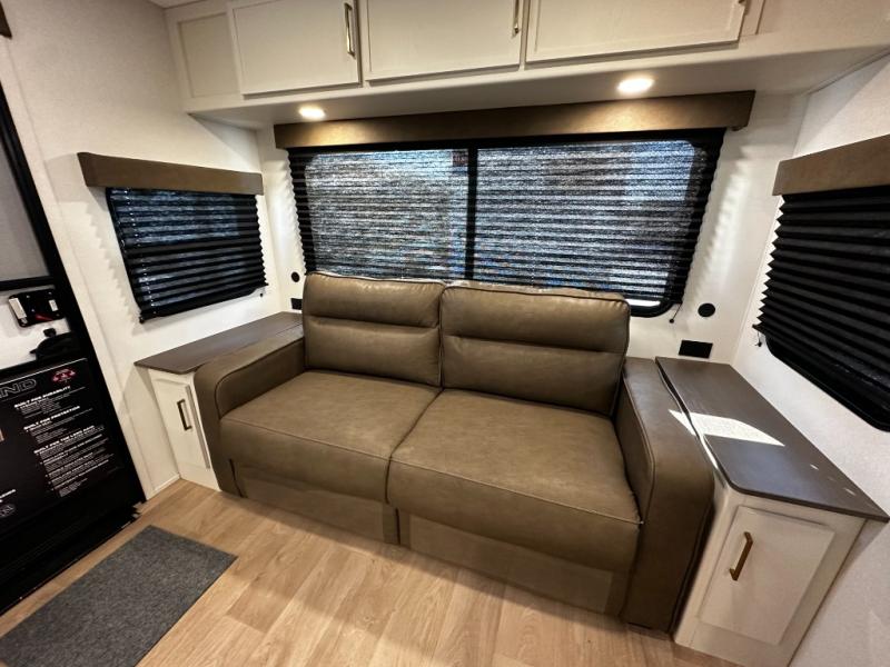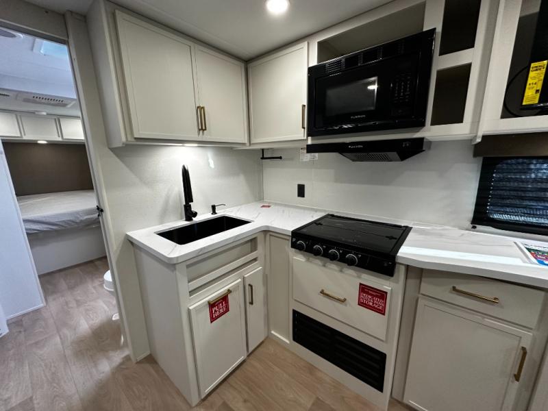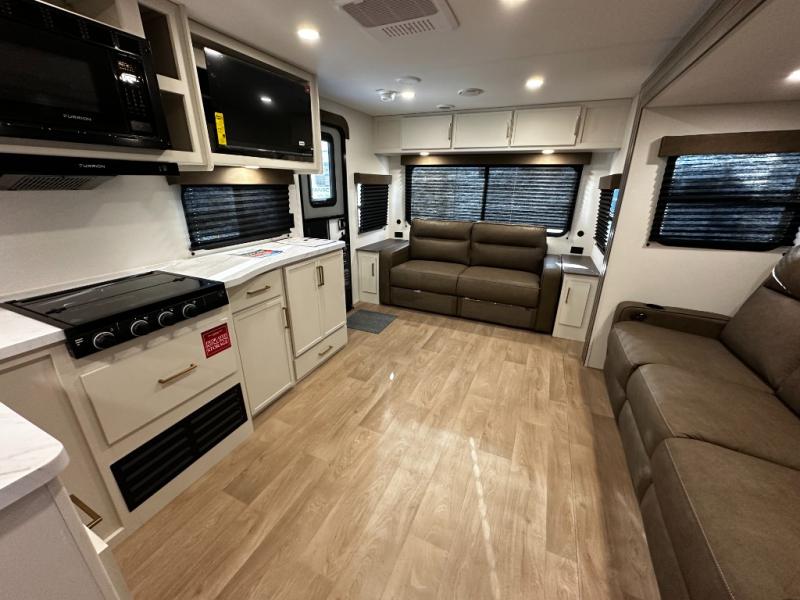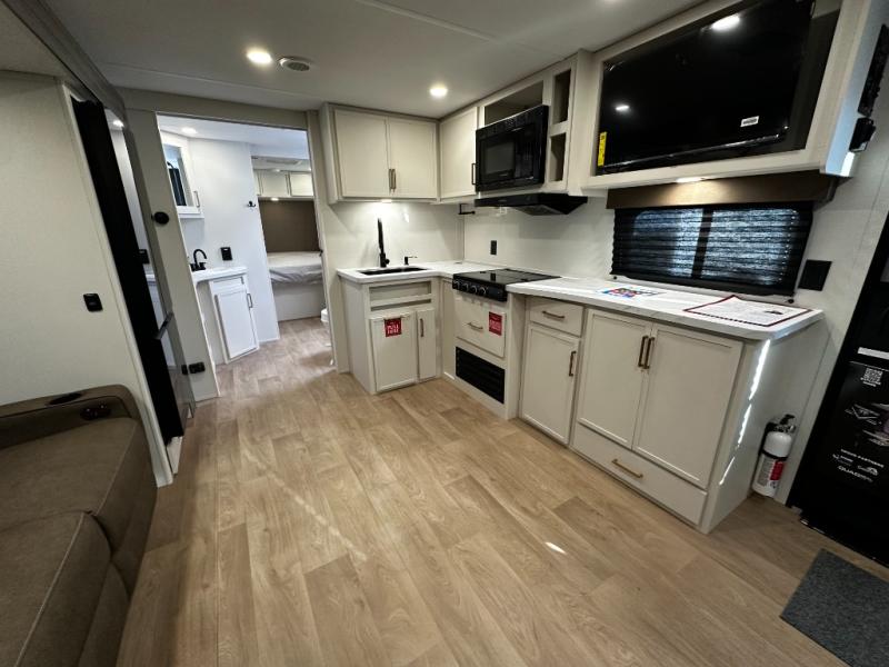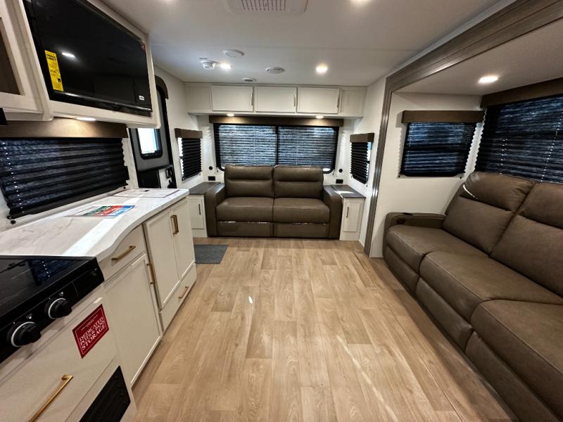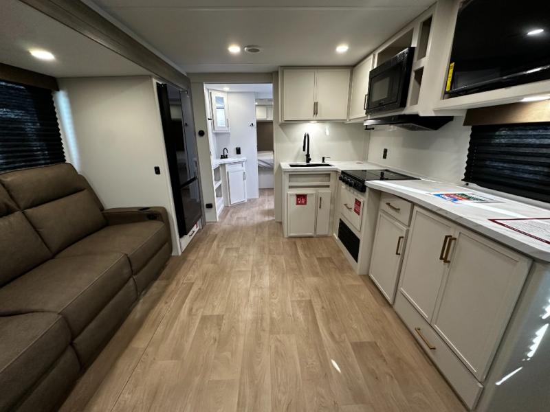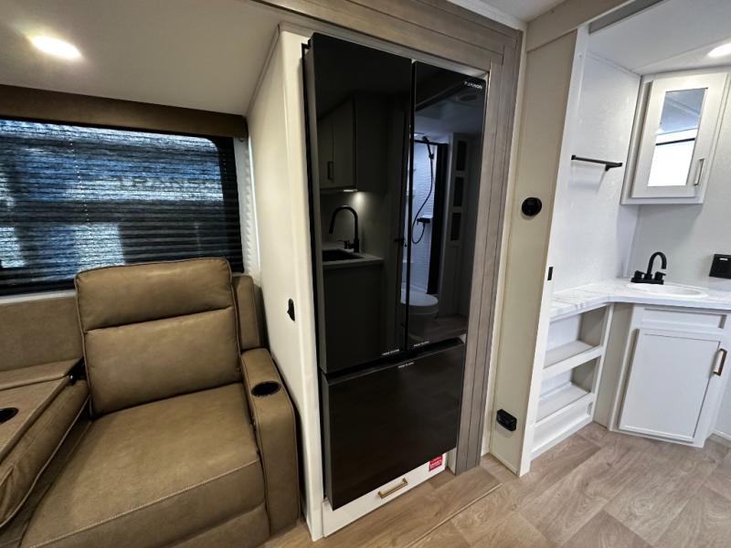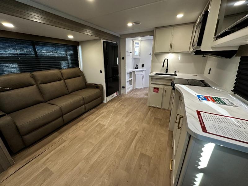 Step inside and you’ll instantly notice the thoughtful layout that makes the most of every inch. The 245RLT features a spacious, open-concept living area with panoramic windows that bring the outdoors in, while letting natural light fill the space. The comfortable lounge seating flows into a well-equipped kitchen where meal prep is a breeze. You’ll appreciate the generous counter space, stainless appliances, and plenty of storage for cookware and pantry items — perfect for everything from morning coffee to dinner after a day of adventure.