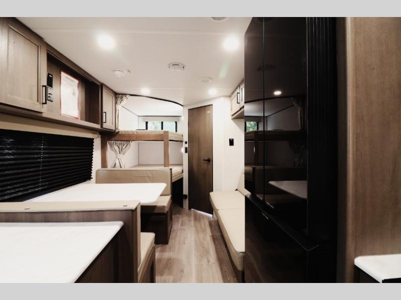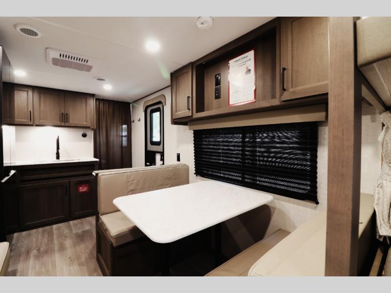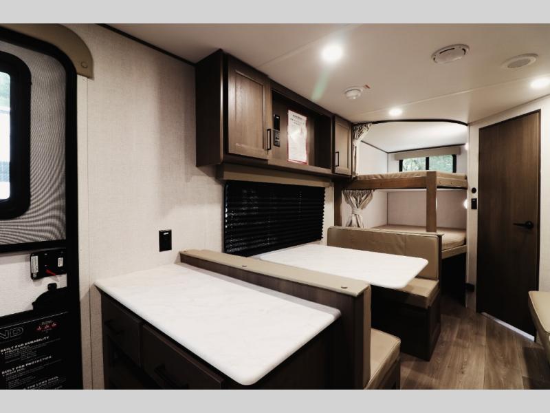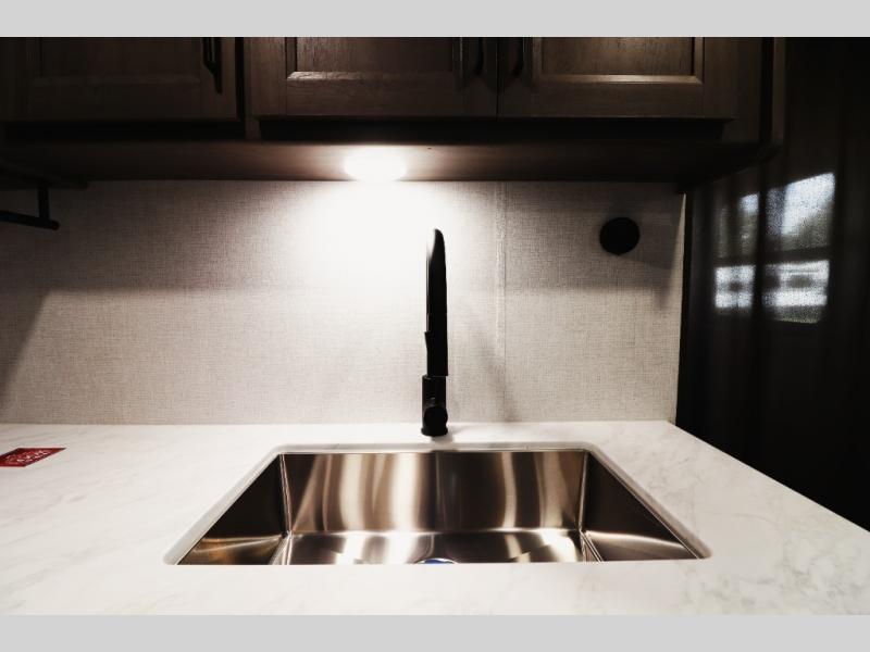 Packed with residential-style comforts—hardwood cabinetry, solid countertops, upgraded furniture—bringing home feel to the campsite.