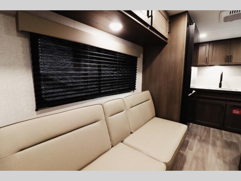 Living & dining: U-shaped booth dinette, 69 rollover sofa—perfect for meals, games, or lounging.