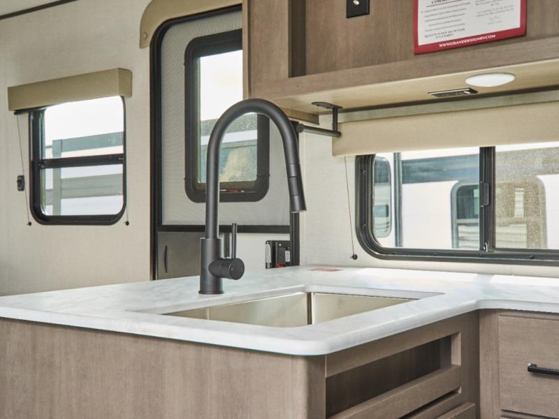 Grand Design’s Transcend Xplor series is known for its quality construction and customer-focused features. From the power tongue jack and universal docking station to USB charging ports and a JBL exterior speaker, every detail is crafted to enhance your camping experience. Inside, upgraded residential furniture and cabinetry create a cozy, home-like feel wherever you roam.