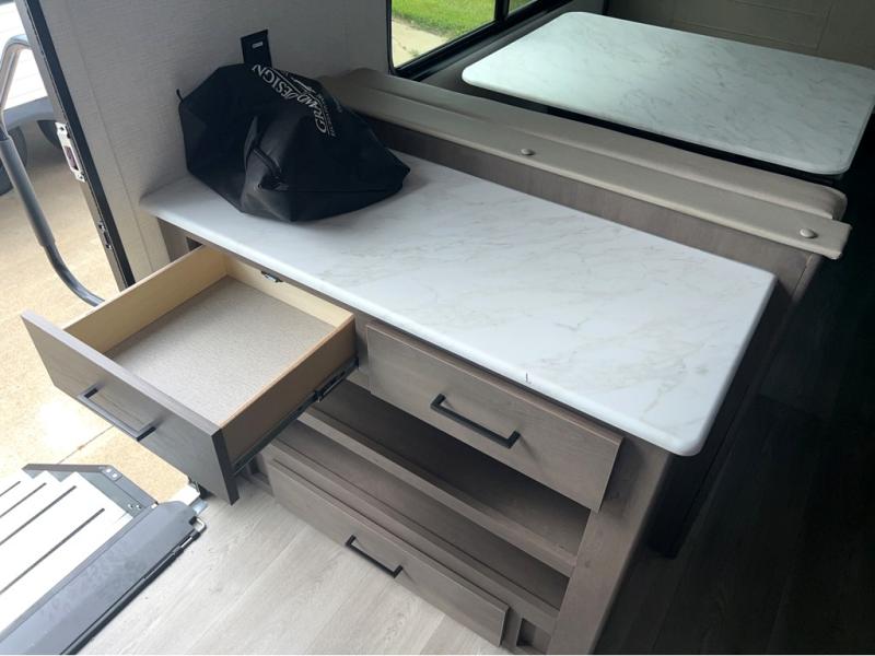 The customer-focused, quality-built Transcend Xplor travel trailers by Grand Design are your ticket to fun and adventure. You will appreciate the power tongue jack when it comes time to set up, as well as the all-in-one utility center and the detachable power cord with an LED light. These models include many outlets throughout, USB ports to charge your gadgets, and a JBL exterior speaker to listen to your favorite tunes. The interior of the Transcend Xplor will have you feeling right at home with upgraded residential furniture, residential countertops, residential cabinet doors, and the list goes on!