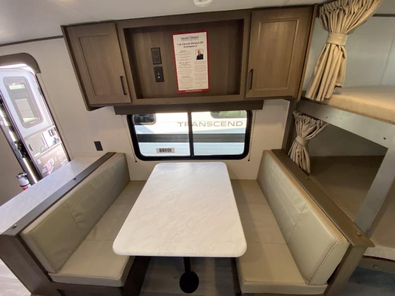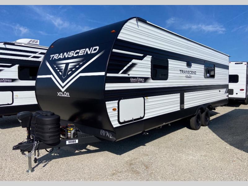 The customer-focused, quality-built Transcend Xplor travel trailers by Grand Design are your ticket to fun and adventure. You will appreciate the power tongue jack when it comes time to set up, as well as the all-in-one utility center and the detachable power cord with an LED light. These models include many outlets throughout, USB ports to charge your gadgets, and a JBL exterior speaker to listen to your favorite tunes. The interior of the Transcend Xplor will have you feeling right at home with upgraded residential furniture, residential countertops, residential cabinet doors, and the list goes on!
