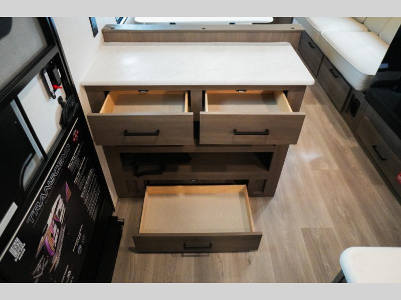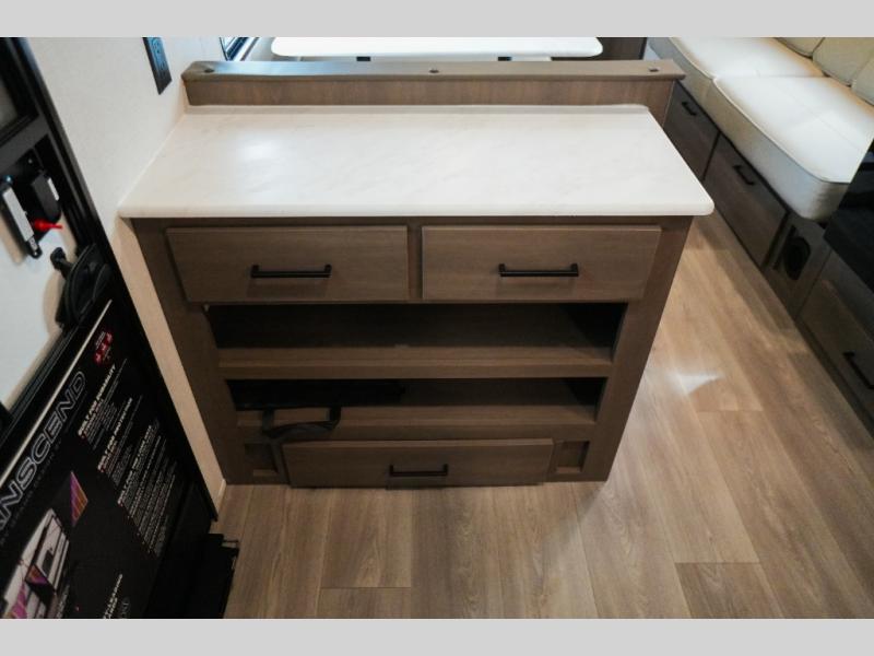 The customer-focused, quality-built Transcend Xplor travel trailers by Grand Design are your ticket to fun and adventure. You will appreciate the power tongue jack when it comes time to set up, as well as the all-in-one utility center and the detachable power cord with an LED light. These models include many outlets throughout, USB ports to charge your gadgets, and a JBL exterior speaker to listen to your favorite tunes. The interior of the Transcend Xplor will have you feeling right at home with upgraded residential furniture, residential countertops, residential cabinet doors, and the list goes on!