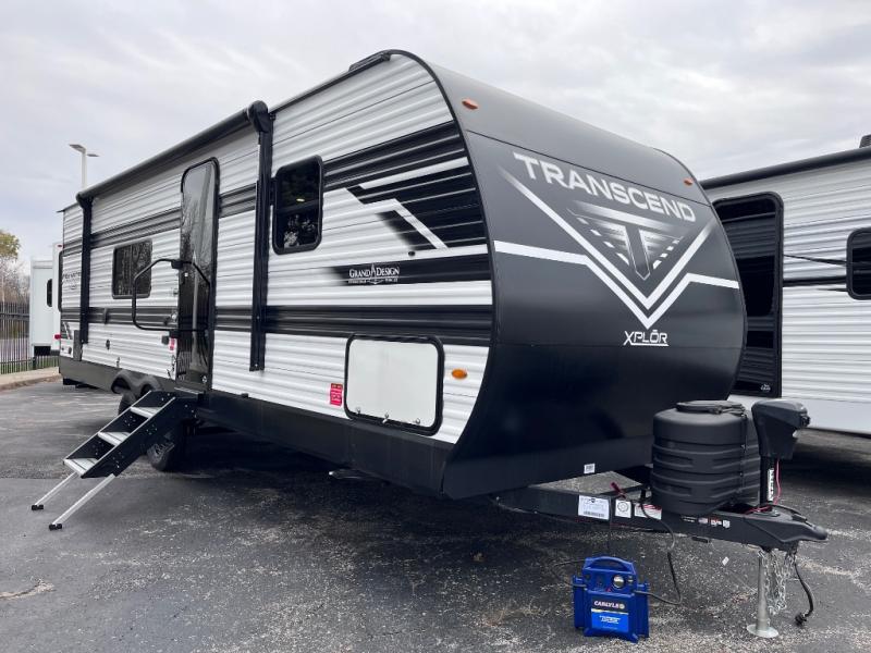 The customer-focused, quality-built Transcend Xplor travel trailers by Grand Design are your ticket to fun and adventure. You will appreciate the power tongue jack when it comes time to set up, as well as the all-in-one utility center and the detachable power cord with an LED light. These models include many outlets throughout, USB ports to charge your gadgets, and a JBL exterior speaker to listen to your favorite tunes. The interior of the Transcend Xplor will have you feeling right at home with upgraded residential furniture, residential countertops, residential cabinet doors, and the list goes on!