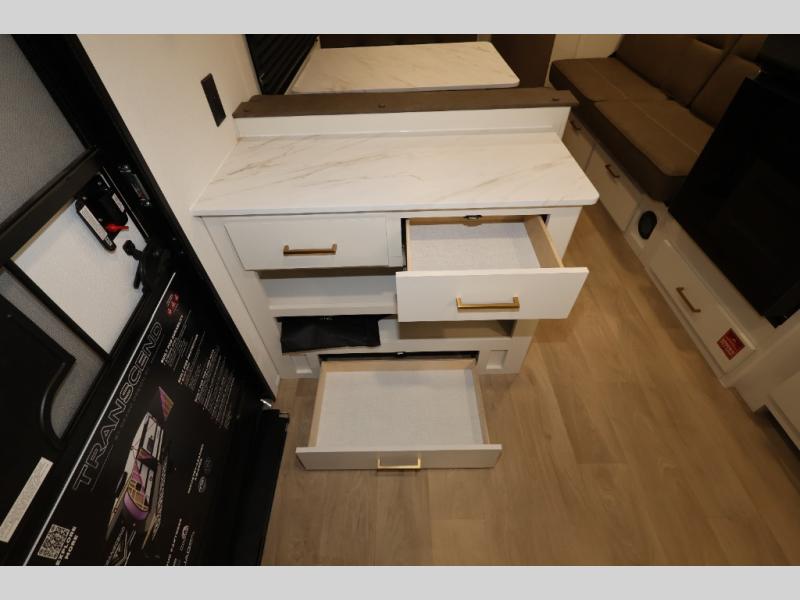 The customer-focused, quality-built Transcend Xplor travel trailers by Grand Design are your ticket to fun and adventure. You will appreciate the power tongue jack when it comes time to set up, as well as the all-in-one utility center and the detachable power cord with an LED light. These models include many outlets throughout, USB ports to charge your gadgets, and a JBL exterior speaker to listen to your favorite tunes. The interior of the Transcend Xplor will have you feeling right at home with upgraded residential furniture, residential countertops, residential cabinet doors, and the list goes on!