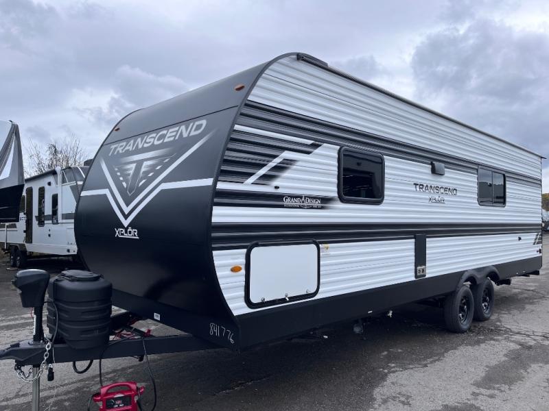 The customer-focused, quality-built Transcend Xplor travel trailers by Grand Design are your ticket to fun and adventure. You will appreciate the power tongue jack when it comes time to set up, as well as the all-in-one utility center and the detachable power cord with an LED light. These models include many outlets throughout, USB ports to charge your gadgets, and a JBL exterior speaker to listen to your favorite tunes. The interior of the Transcend Xplor will have you feeling right at home with upgraded residential furniture, residential countertops, residential cabinet doors, and the list goes on!