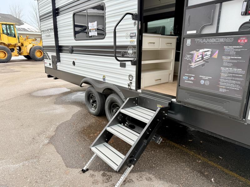 The customer-focused, quality-built Transcend Xplor travel trailers by Grand Design are your ticket to fun and adventure. You will appreciate the power tongue jack when it comes time to set up, as well as the all-in-one utility center and the detachable power cord with an LED light. These models include many outlets throughout, USB ports to charge your gadgets, and a JBL exterior speaker to listen to your favorite tunes. The interior of the Transcend Xplor will have you feeling right at home with upgraded residential furniture, residential countertops, residential cabinet doors, and the list goes on!