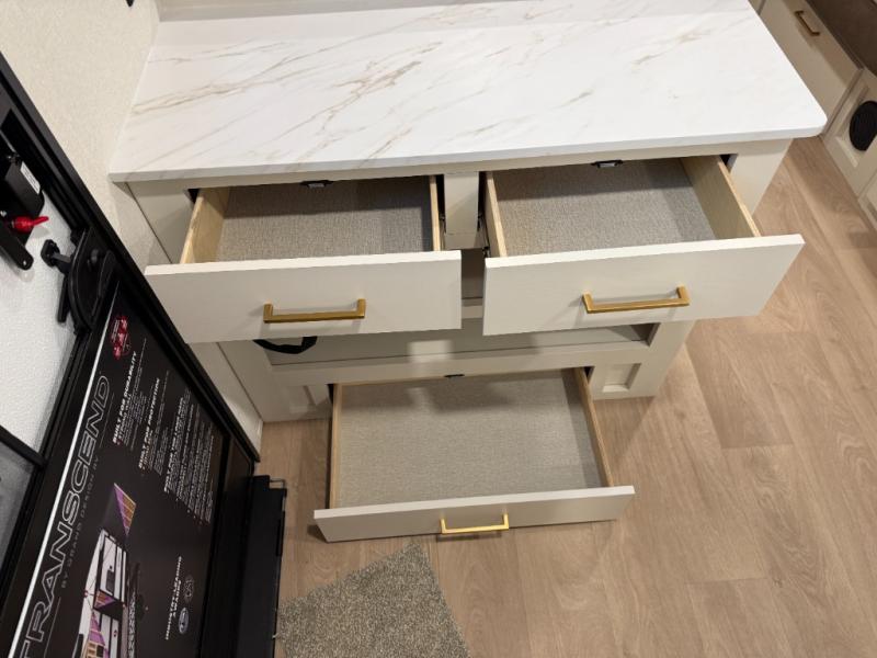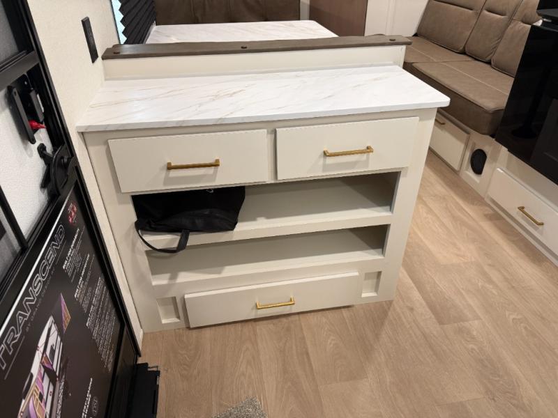 The customer-focused, quality-built Transcend Xplor travel trailers by Grand Design are your ticket to fun and adventure. You will appreciate the power tongue jack when it comes time to set up, as well as the all-in-one utility center and the detachable power cord with an LED light. These models include many outlets throughout, USB ports to charge your gadgets, and a JBL exterior speaker to listen to your favorite tunes. The interior of the Transcend Xplor will have you feeling right at home with upgraded residential furniture, residential countertops, residential cabinet doors, and the list goes on!