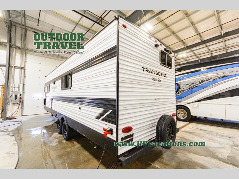 The customer-focused, quality-built Transcend Xplor travel trailers by Grand Design are your ticket to fun and adventure. You will appreciate the power tongue jack when it comes time to set up, as well as the all-in-one utility center and the detachable power cord with an LED light. These models include many outlets throughout, USB ports to charge your gadgets, and a JBL exterior speaker to listen to your favorite tunes. The interior of the Transcend Xplor will have you feeling right at home with upgraded residential furniture, residential countertops, residential cabinet doors, and the list goes on!