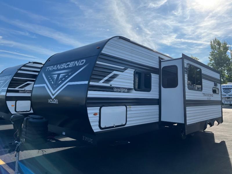The customer-focused, quality-built Transcend Xplor travel trailers by Grand Design are your ticket to fun and adventure. You will appreciate the power tongue jack when it comes time to set up, as well as the all-in-one utility center and the detachable power cord with an LED light. These models include many outlets throughout, USB ports to charge your gadgets, and a JBL exterior speaker to listen to your favorite tunes. The interior of the Transcend Xplor will have you feeling right at home with upgraded residential furniture, residential countertops, residential cabinet doors, and the list goes on!