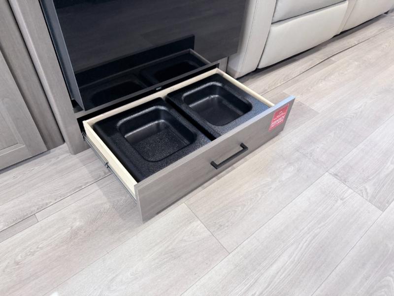 - Heated and enclosed underbelly with suspended tanks for extended season camping