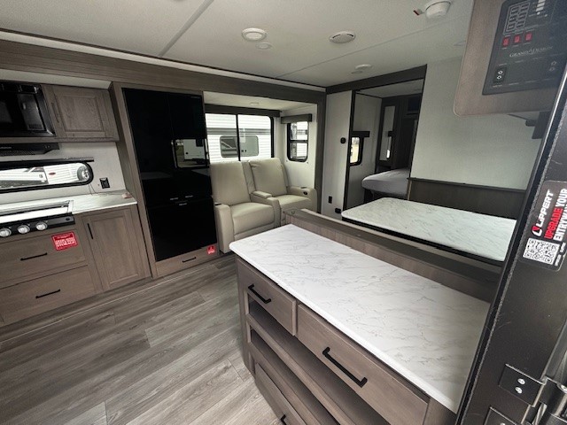 The customer-focused, quality-built Transcend Xplor travel trailers by Grand Design are your ticket to fun and adventure. You will appreciate the power tongue jack when it comes time to set up, as well as the all-in-one utility center and the detachable power cord with an LED light. These models include many outlets throughout, USB ports to charge your gadgets, and a JBL exterior speaker to listen to your favorite tunes. The interior of the Transcend Xplor will have you feeling right at home with upgraded residential furniture, residential countertops, residential cabinet doors, and the list goes on!