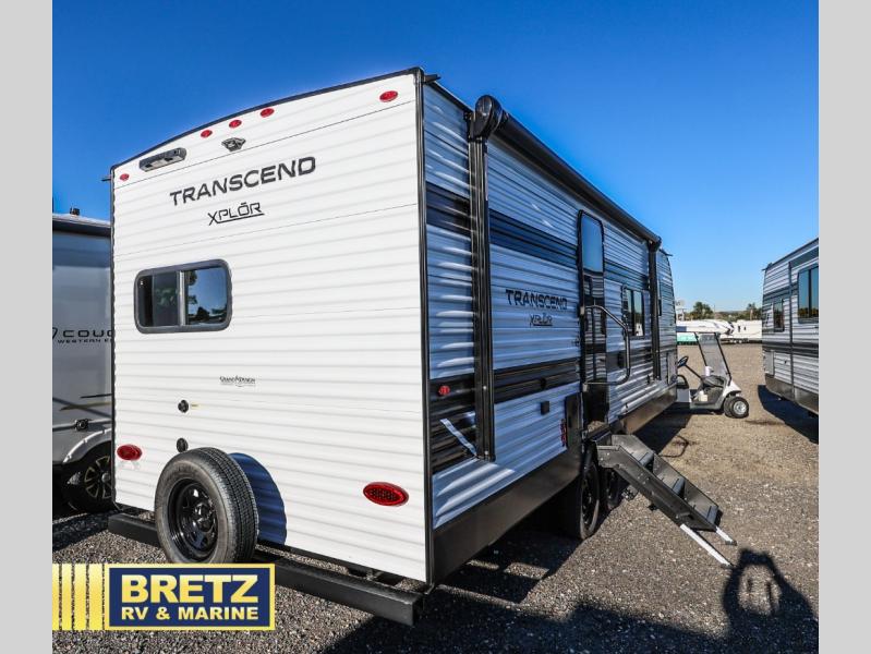 The customer-focused, quality-built Transcend Xplor travel trailers by Grand Design are your ticket to fun and adventure. You will appreciate the power tongue jack when it comes time to set up, as well as the all-in-one utility center and the detachable power cord with an LED light. These models include many outlets throughout, USB ports to charge your gadgets, and a JBL exterior speaker to listen to your favorite tunes. The interior of the Transcend Xplor will have you feeling right at home with upgraded residential furniture, residential countertops, residential cabinet doors, and the list goes on!