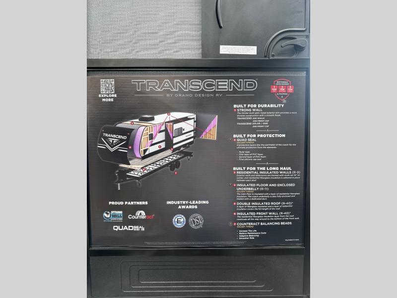 The customer-focused, quality-built Transcend Xplor travel trailers by Grand Design are your ticket to fun and adventure. You will appreciate the power tongue jack when it comes time to set up, as well as the all-in-one utility center and the detachable power cord with an LED light. These models include many outlets throughout, USB ports to charge your gadgets, and a JBL exterior speaker to listen to your favorite tunes. The interior of the Transcend Xplor will have you feeling right at home with upgraded residential furniture, residential countertops, residential cabinet doors, and the list goes on!