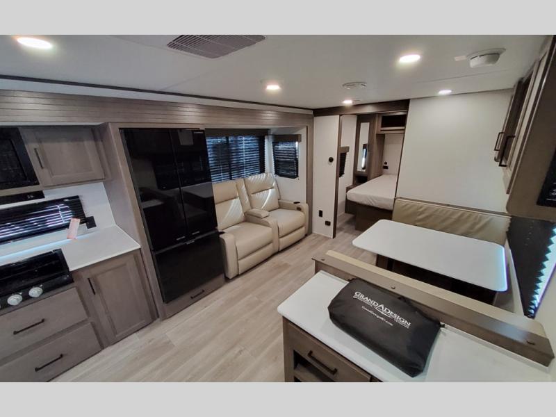 The customer-focused, quality-built Transcend Xplor travel trailers by Grand Design are your ticket to fun and adventure. You will appreciate the power tongue jack when it comes time to set up, as well as the all-in-one utility center and the detachable power cord with an LED light. These models include many outlets throughout, USB ports to charge your gadgets, and a JBL exterior speaker to listen to your favorite tunes. The interior of the Transcend Xplor will have you feeling right at home with upgraded residential furniture, residential countertops, residential cabinet doors, and the list goes on!