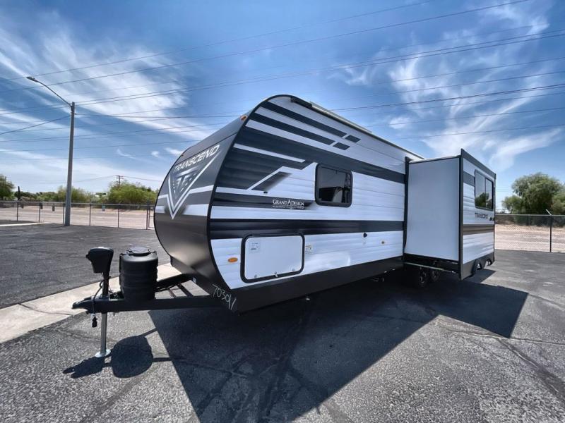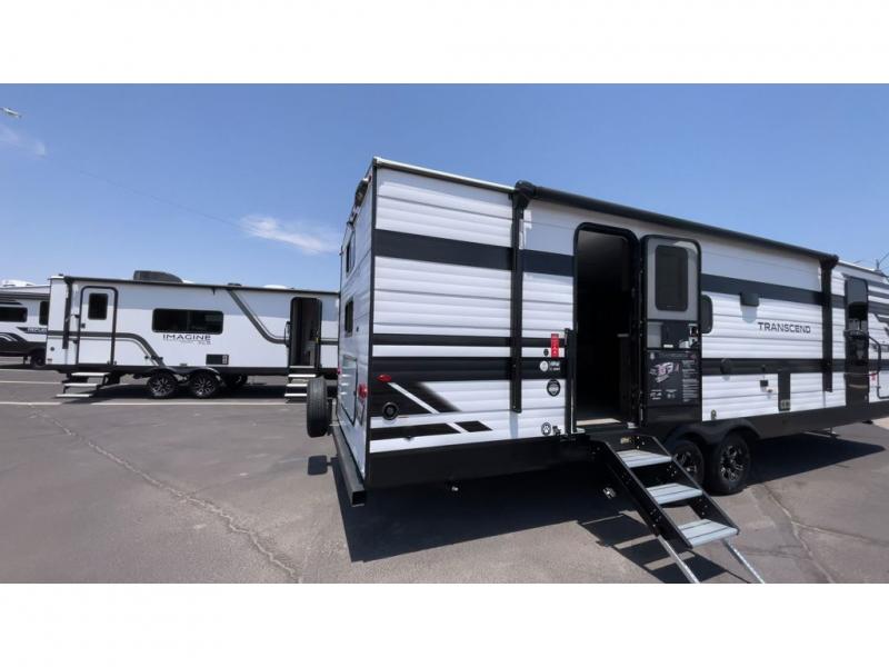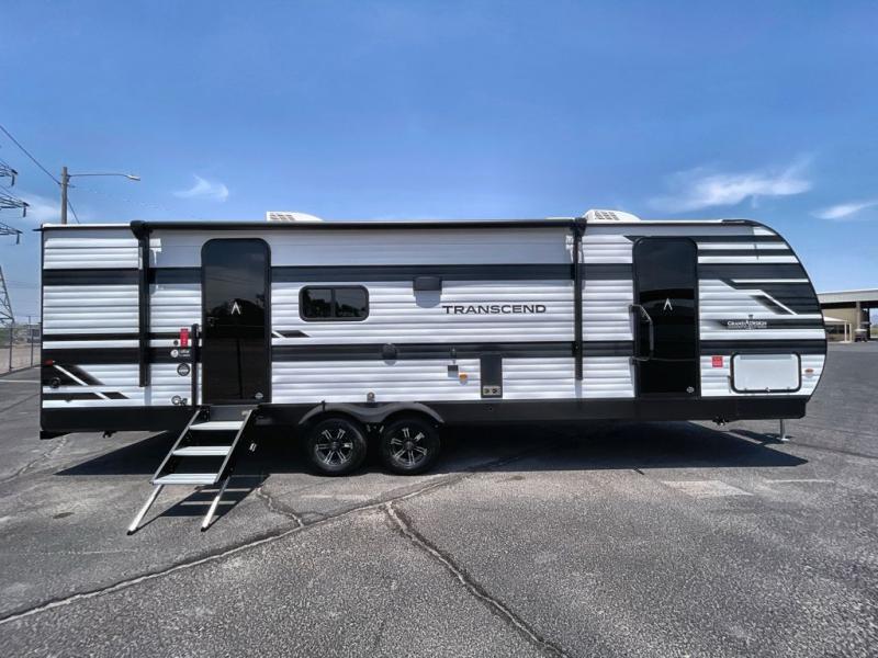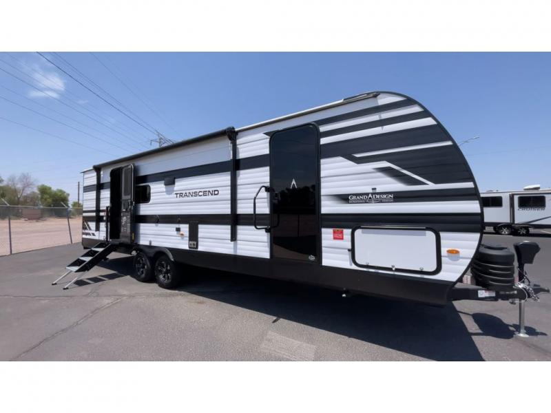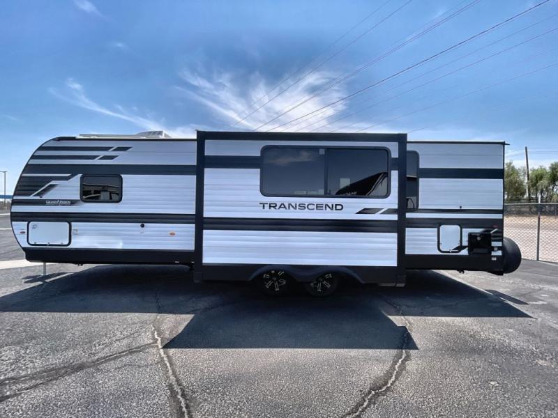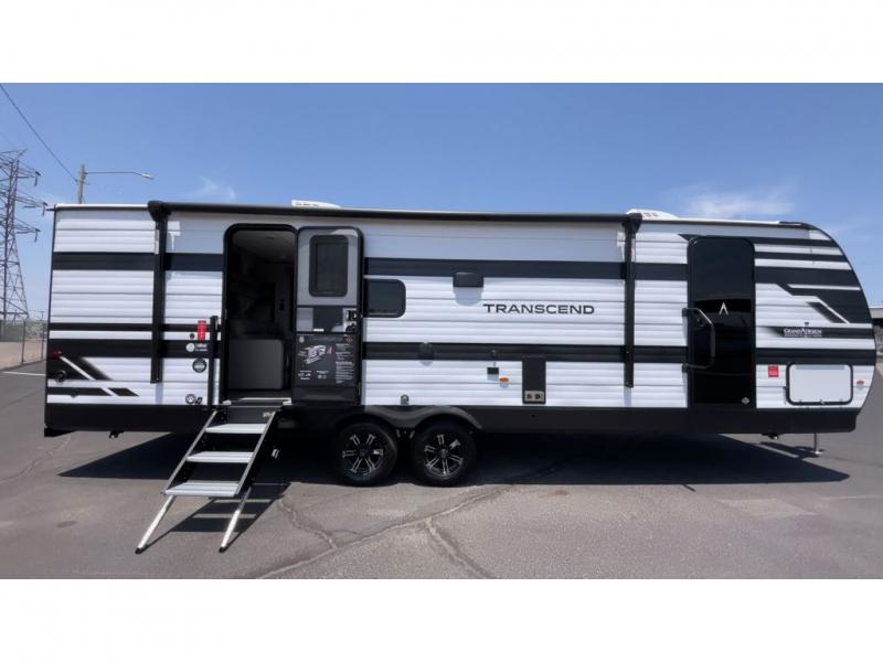 With any Transcend travel trailer by Grand Design, you will enjoy upscale appointments and convenient amenities to make each camping experience one to remember! The Quad Seal technology, residential insulated walls, plus heated and enclosed underbelly with suspended tanks make these units solid and durable. There is a black automotive glass door outside, along with a Safe-T-Rail assist on the main entry door, backup camera prep, and a universal docking station. JBL interior and exterior speakers plus a JBL head unit will let you listen to your favorite tunes as you visit under the power awning with LED strip lights. Inside, you'll enjoy multiple outlets to keep your gadgets charged, thermoformed and seamless countertops, and a 6' 6" interior height so you won't feel closed in. The Solar Prep Package will allow you to enjoy off-grid capabilities with a 200W solar panel, which is wired for up to 600W, a 30 AMP Bluetooth solar controller, a 2000W inverter prep, and more!