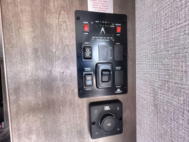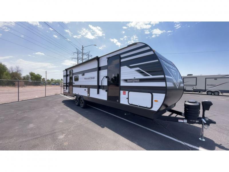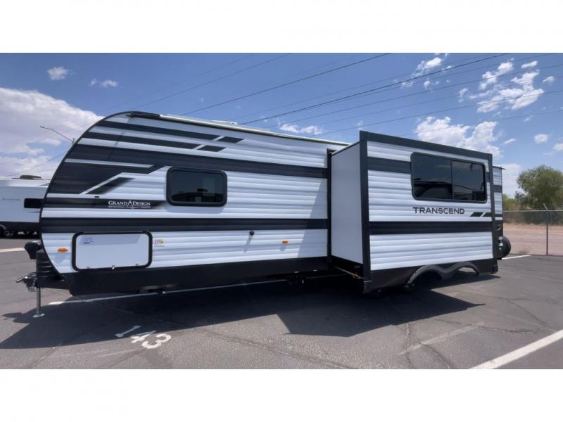 With any Transcend travel trailer by Grand Design, you will enjoy upscale appointments and convenient amenities to make each camping experience one to remember! The Quad Seal technology, residential insulated walls, plus heated and enclosed underbelly with suspended tanks make these units solid and durable. There is a black automotive glass door outside, along with a Safe-T-Rail assist on the main entry door, backup camera prep, and a universal docking station. JBL interior and exterior speakers plus a JBL head unit will let you listen to your favorite tunes as you visit under the power awning with LED strip lights. Inside, you'll enjoy multiple outlets to keep your gadgets charged, thermoformed and seamless countertops, and a 6' 6" interior height so you won't feel closed in. The Solar Prep Package will allow you to enjoy off-grid capabilities with a 200W solar panel, which is wired for up to 600W, a 30 AMP Bluetooth solar controller, a 2000W inverter prep, and more!