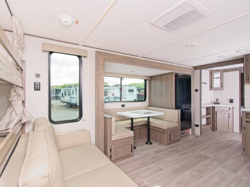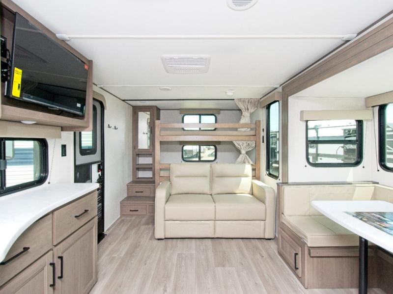 Experience the perfect blend of comfort and convenience with the Grand Design Transcend 265BHT, featuring spacious double-size bunks and dual entry doors for effortless family travel.