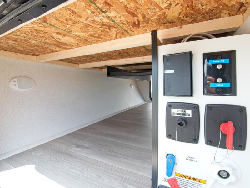 Inside, enjoy multiple charging outlets, seamless thermoformed countertops, and a 6'6" interior height that provides a spacious, open feel. The Solar Prep Package includes a 200W solar panel, Bluetooth-enabled 30 AMP solar controller, and 2000W inverter prep, giving you the freedom to camp off-grid with confidence.