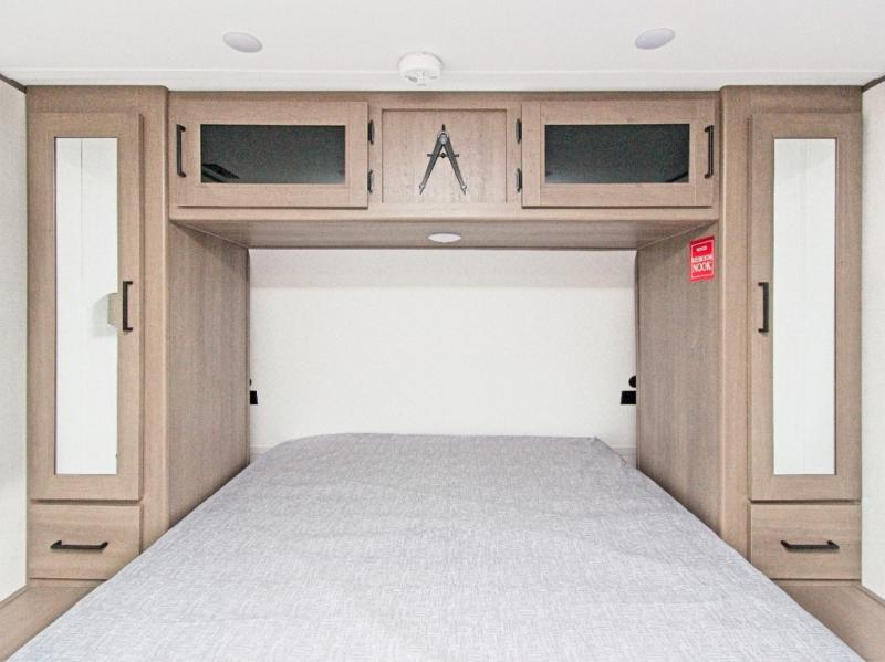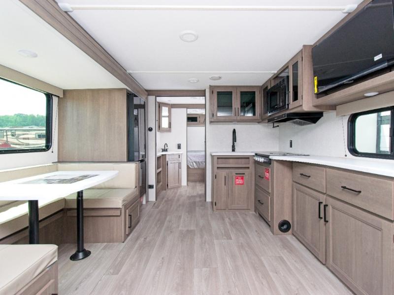 The Grand Design Transcend 265BHT is built to accommodate families and groups looking for comfort, functionality, and adventure. With sleeping space for up to eight, this travel trailer features double-size bunks in the rear, complete with step storage and a dedicated wardrobe—perfect for kids or guests.
