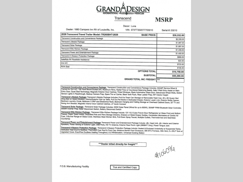 Call Campers Inn RV of Louisville at 812 282 7718 for Details on the Grand Design Transcend 265BHT Travel Trailer