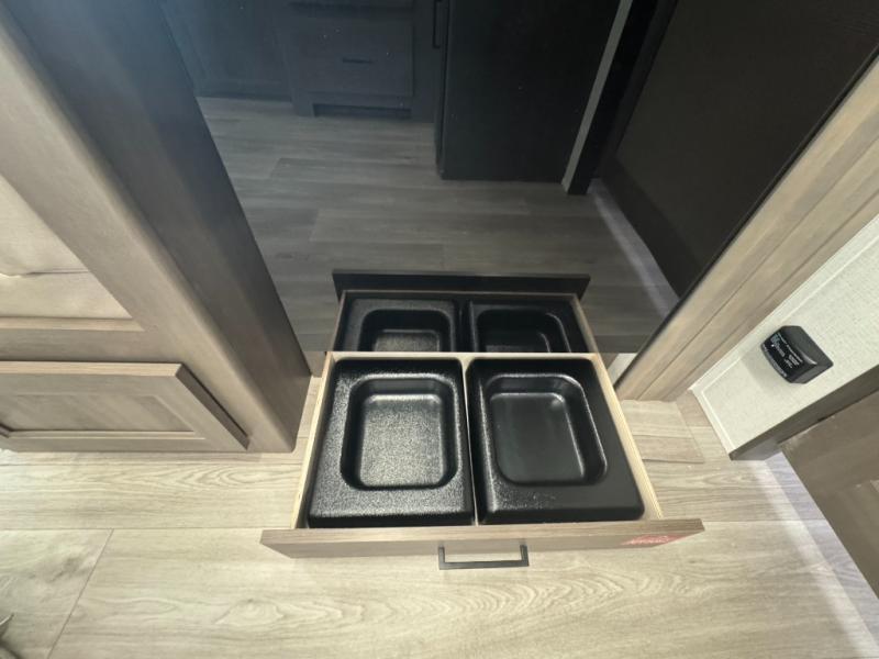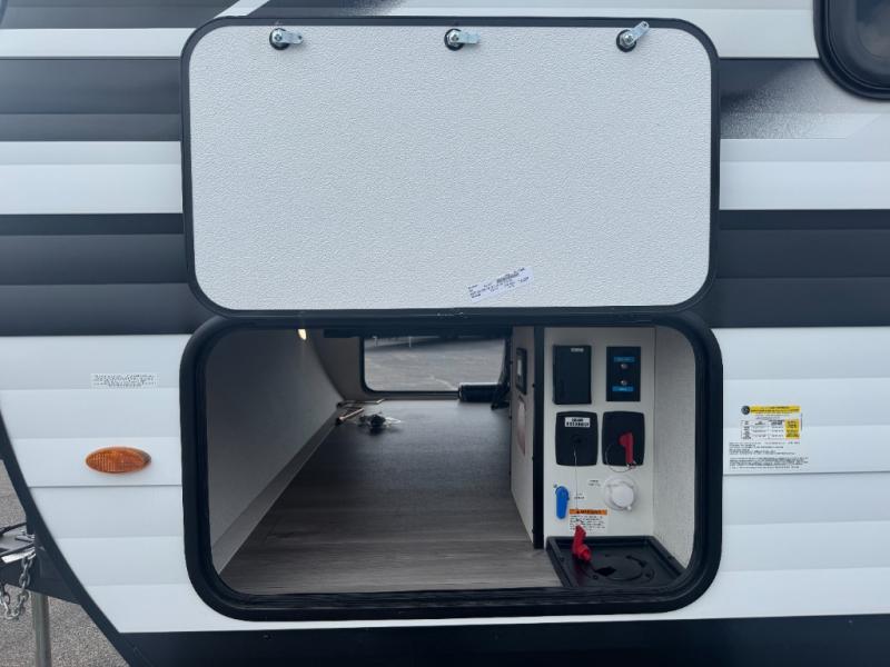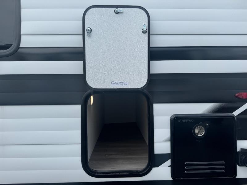 Outdoor Storage & Features: With a massive pass-through storage compartment, rear ladder, and power awning with LED lighting, the exterior is just as ready for fun as the interior.