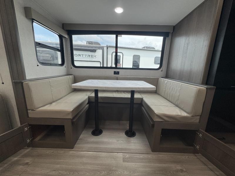 Large Living Area with Slide-Out: A generous slide creates room to stretch out with a comfy jackknife sofa and a U-shaped dinette—ideal for meals, game nights, or additional sleeping space.