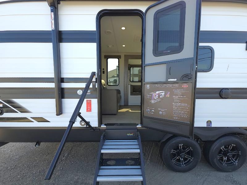 The Grand Design Transcend 265BHT offers spacious family-friendly sleeping with double-size bunks and a front master bedroom, plus outdoor cooking convenience with a rear griddle and 1.7 cu. ft. refrigerator for the ultimate camping experience.