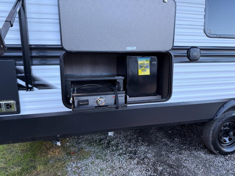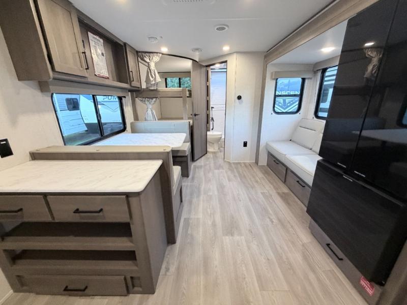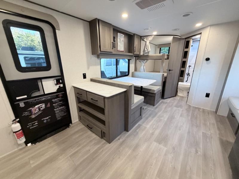 The Grand Design Transcend Xplor 26BHX offers a perfect blend of comfort and practicality for larger families or group travelers. Enjoy movie nights in the upgraded theater seating, cook indoors or outdoors with the dual kitchen options, and rest easy with sleeping space for up to nine. With residential finishes, durable design, and modern conveniences, this travel trailer is built to make every camping trip feel like home.