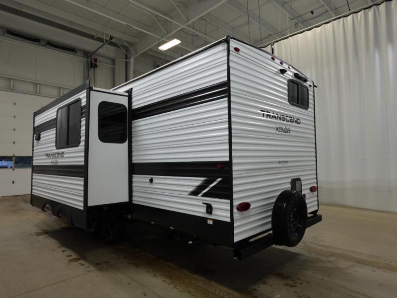 The customer-focused, quality-built Transcend Xplor travel trailers by Grand Design are your ticket to fun and adventure. You will appreciate the power tongue jack when it comes time to set up, as well as the all-in-one utility center and the detachable power cord with an LED light. These models include many outlets throughout, USB ports to charge your gadgets, and a JBL exterior speaker to listen to your favorite tunes. The interior of the Transcend Xplor will have you feeling right at home with upgraded residential furniture, residential countertops, residential cabinet doors, and the list goes on!