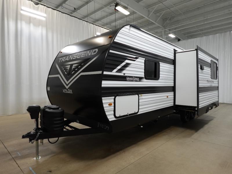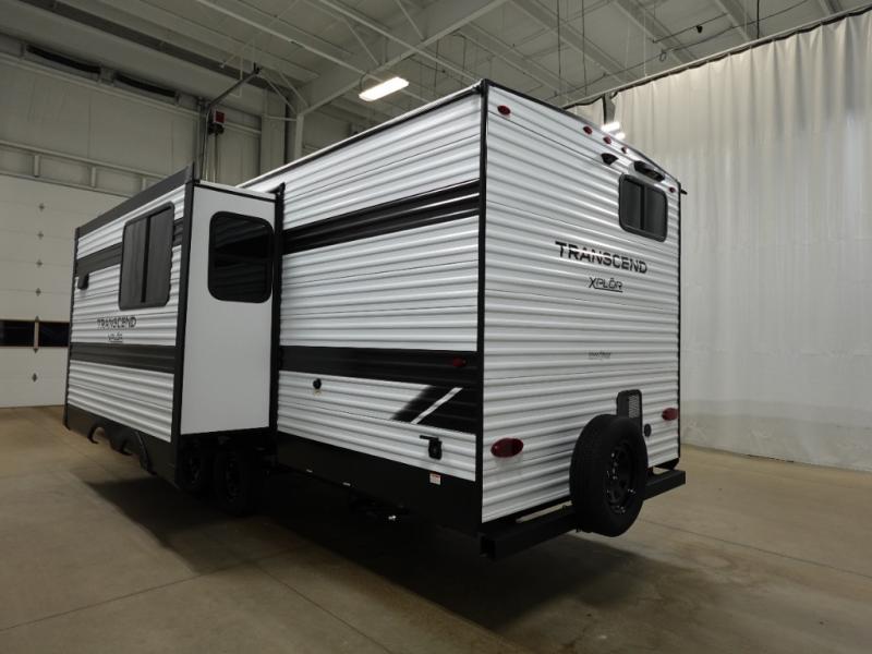 The customer-focused, quality-built Transcend Xplor travel trailers by Grand Design are your ticket to fun and adventure. You will appreciate the power tongue jack when it comes time to set up, as well as the all-in-one utility center and the detachable power cord with an LED light. These models include many outlets throughout, USB ports to charge your gadgets, and a JBL exterior speaker to listen to your favorite tunes. The interior of the Transcend Xplor will have you feeling right at home with upgraded residential furniture, residential countertops, residential cabinet doors, and the list goes on!