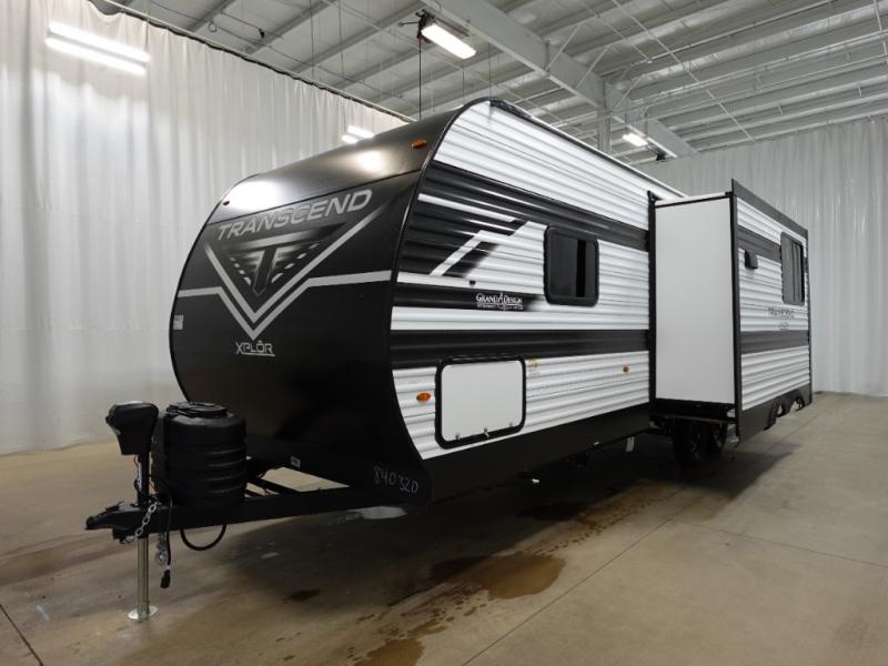 The customer-focused, quality-built Transcend Xplor travel trailers by Grand Design are your ticket to fun and adventure. You will appreciate the power tongue jack when it comes time to set up, as well as the all-in-one utility center and the detachable power cord with an LED light. These models include many outlets throughout, USB ports to charge your gadgets, and a JBL exterior speaker to listen to your favorite tunes. The interior of the Transcend Xplor will have you feeling right at home with upgraded residential furniture, residential countertops, residential cabinet doors, and the list goes on!
