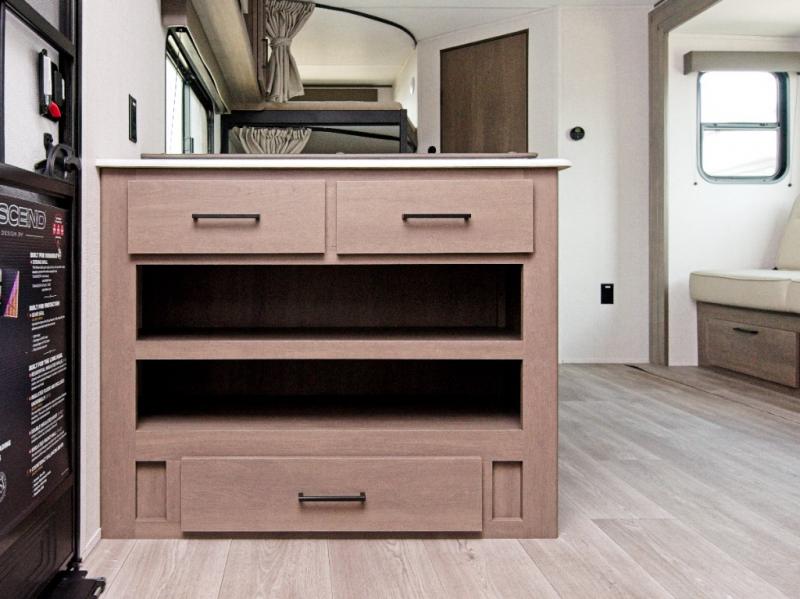 The Transcend Xplor series is known for its residential-style interior, including upgraded furniture, countertops, and cabinet doors. You’ll appreciate the power tongue jack, detachable power cord with LED light, and JBL exterior speaker for added convenience and entertainment.