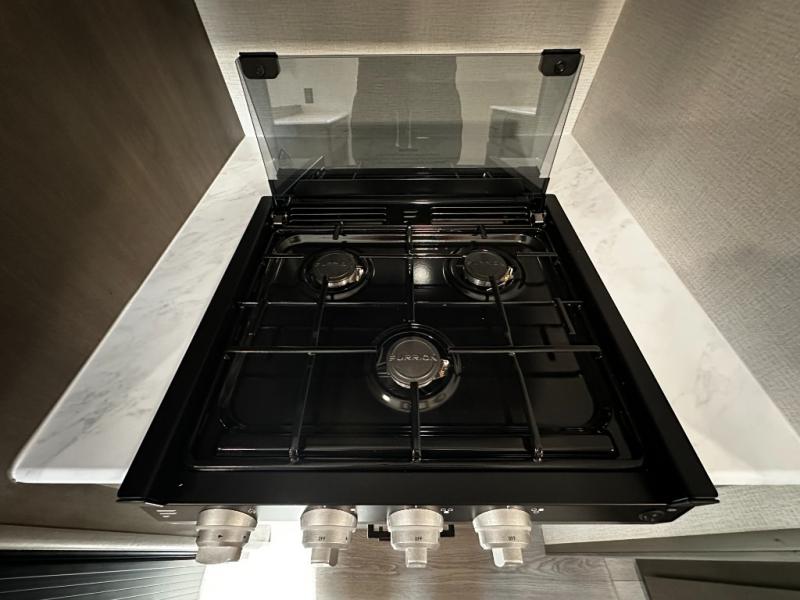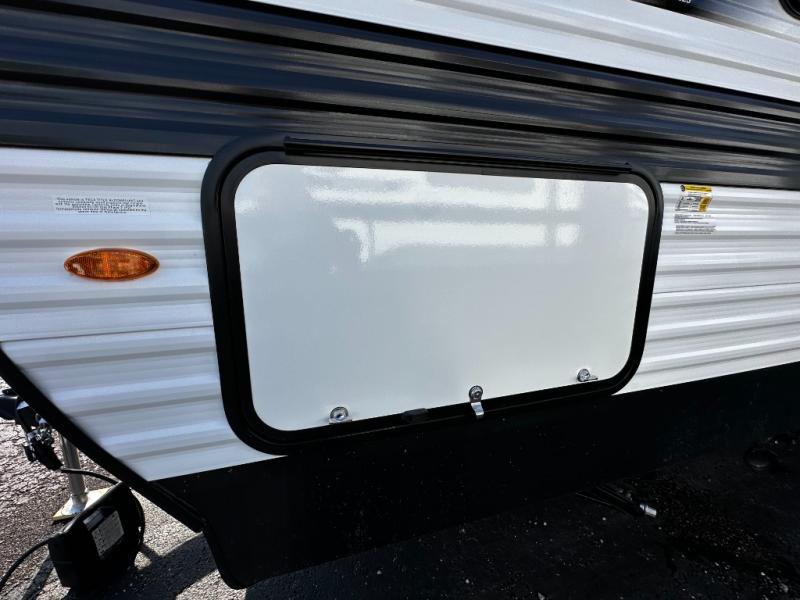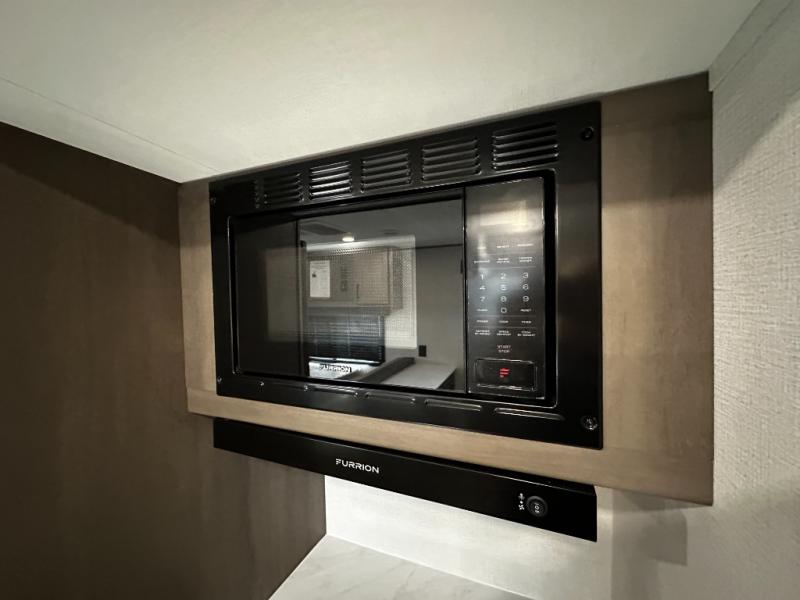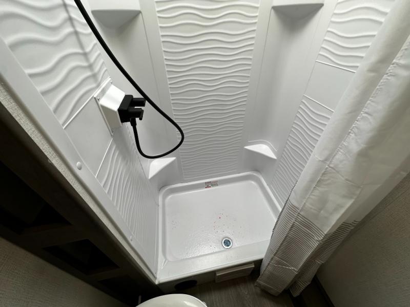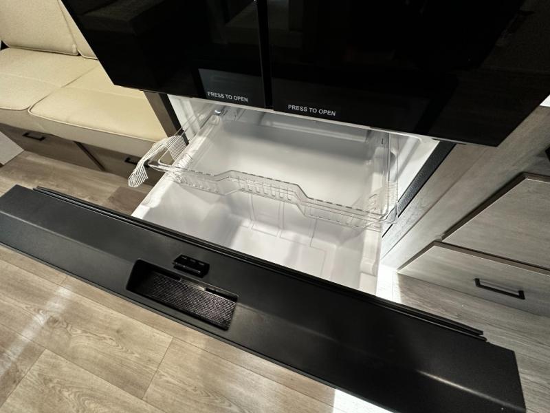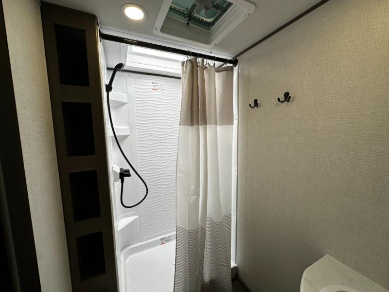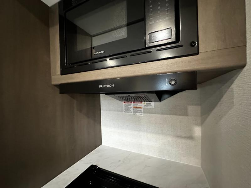 The fully equipped kitchen includes upgraded appliances, a deep stainless-steel sink, seamless countertops, and ample cabinet space to handle everything from quick snacks to full meals. The bathroom is conveniently located near the bunks and exterior door, making it easy to access whether you’re relaxing inside or coming in from a day outdoors.