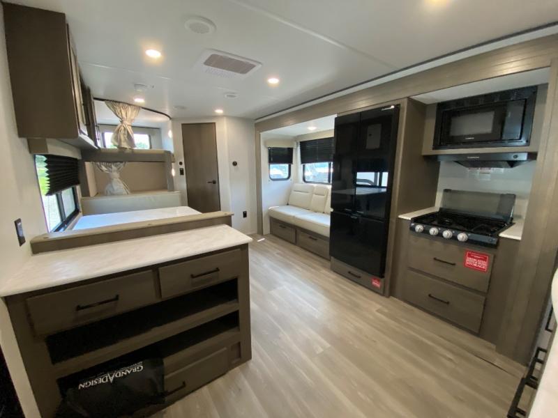 The customer-focused, quality-built Transcend Xplor travel trailers by Grand Design are your ticket to fun and adventure. You will appreciate the power tongue jack when it comes time to set up, as well as the all-in-one utility center and the detachable power cord with an LED light. These models include many outlets throughout, USB ports to charge your gadgets, and a JBL exterior speaker to listen to your favorite tunes. The interior of the Transcend Xplor will have you feeling right at home with upgraded residential furniture, residential countertops, residential cabinet doors, and the list goes on!