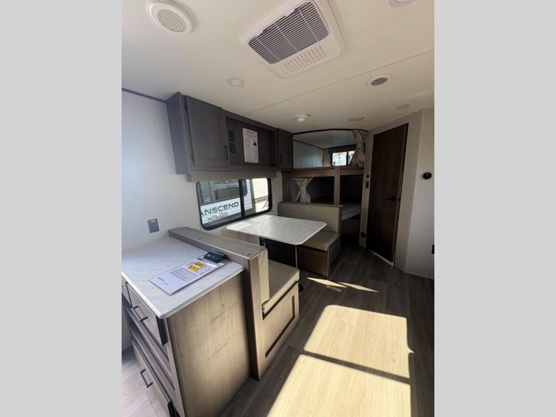 The customer-focused, quality-built Transcend Xplor travel trailers by Grand Design are your ticket to fun and adventure. You will appreciate the power tongue jack when it comes time to set up, as well as the all-in-one utility center and the detachable power cord with an LED light. These models include many outlets throughout, USB ports to charge your gadgets, and a JBL exterior speaker to listen to your favorite tunes. The interior of the Transcend Xplor will have you feeling right at home with upgraded residential furniture, residential countertops, residential cabinet doors, and the list goes on!
