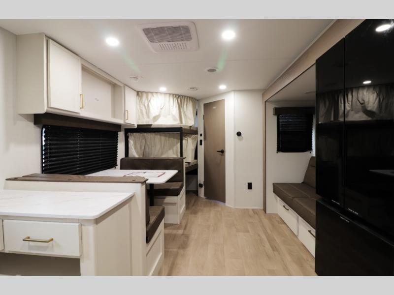 Inside, you’ll love the bright, residential feel: 78" interior height, upgraded storage and cabinetry touches, and a layout that keeps everyone comfortable—whether you’re a first-time buyer learning the ropes, a couple who wants a private front bedroom, or a family that needs bunk space and a real bathroom setup.